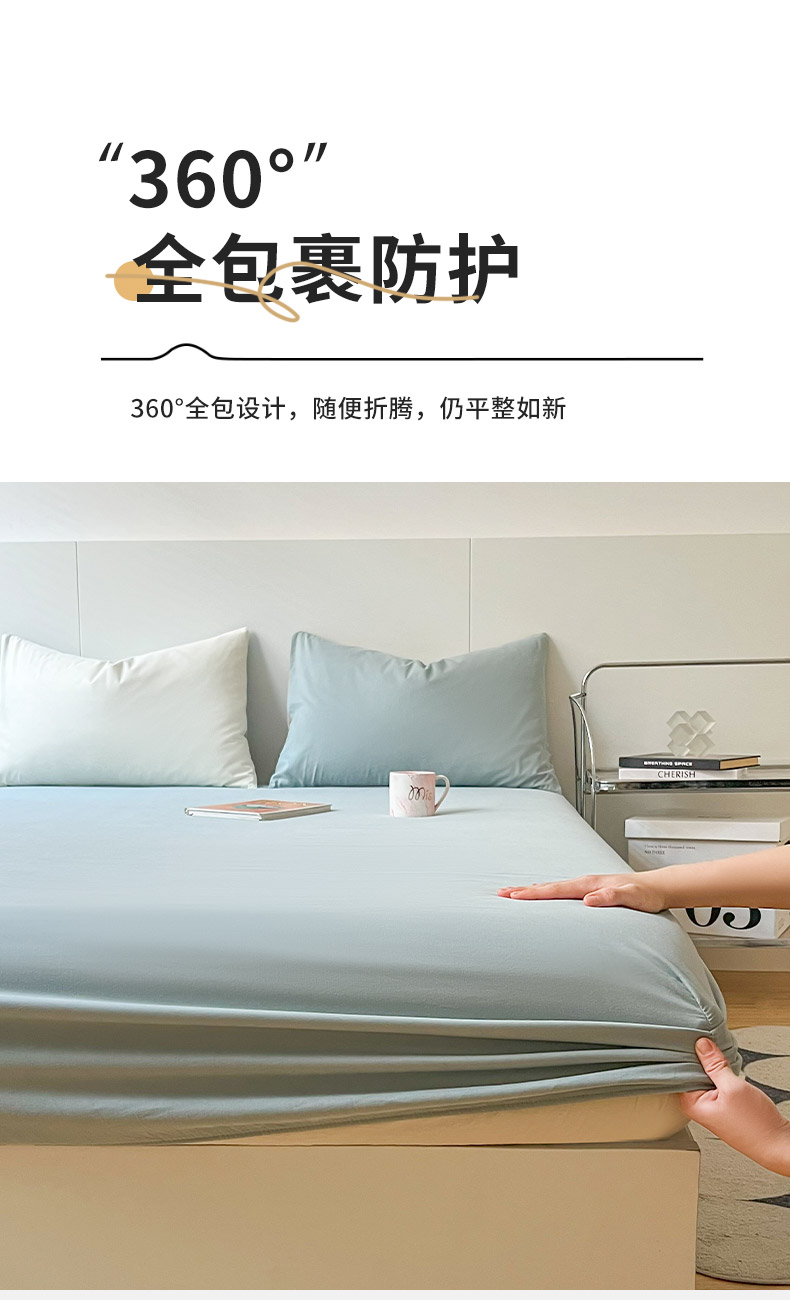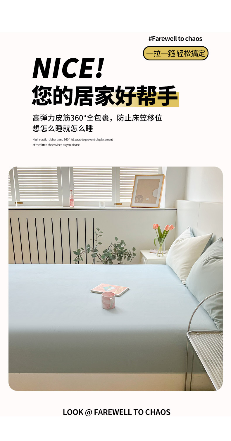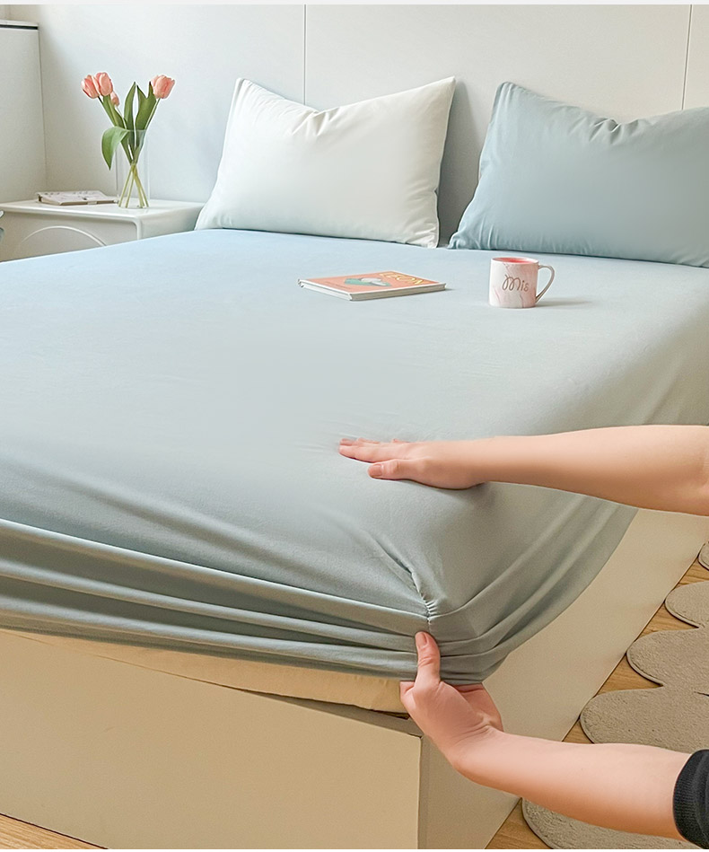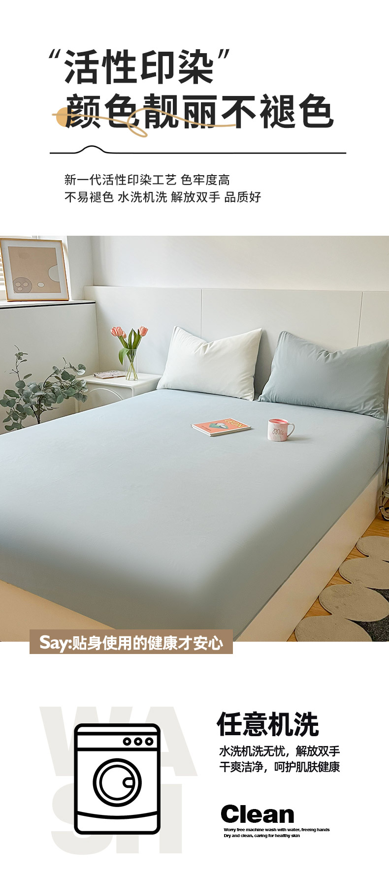 米粒家纺 2024新款纯色磨毛床笠 天蓝