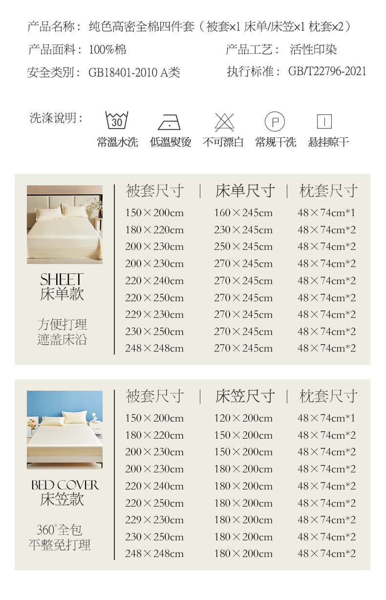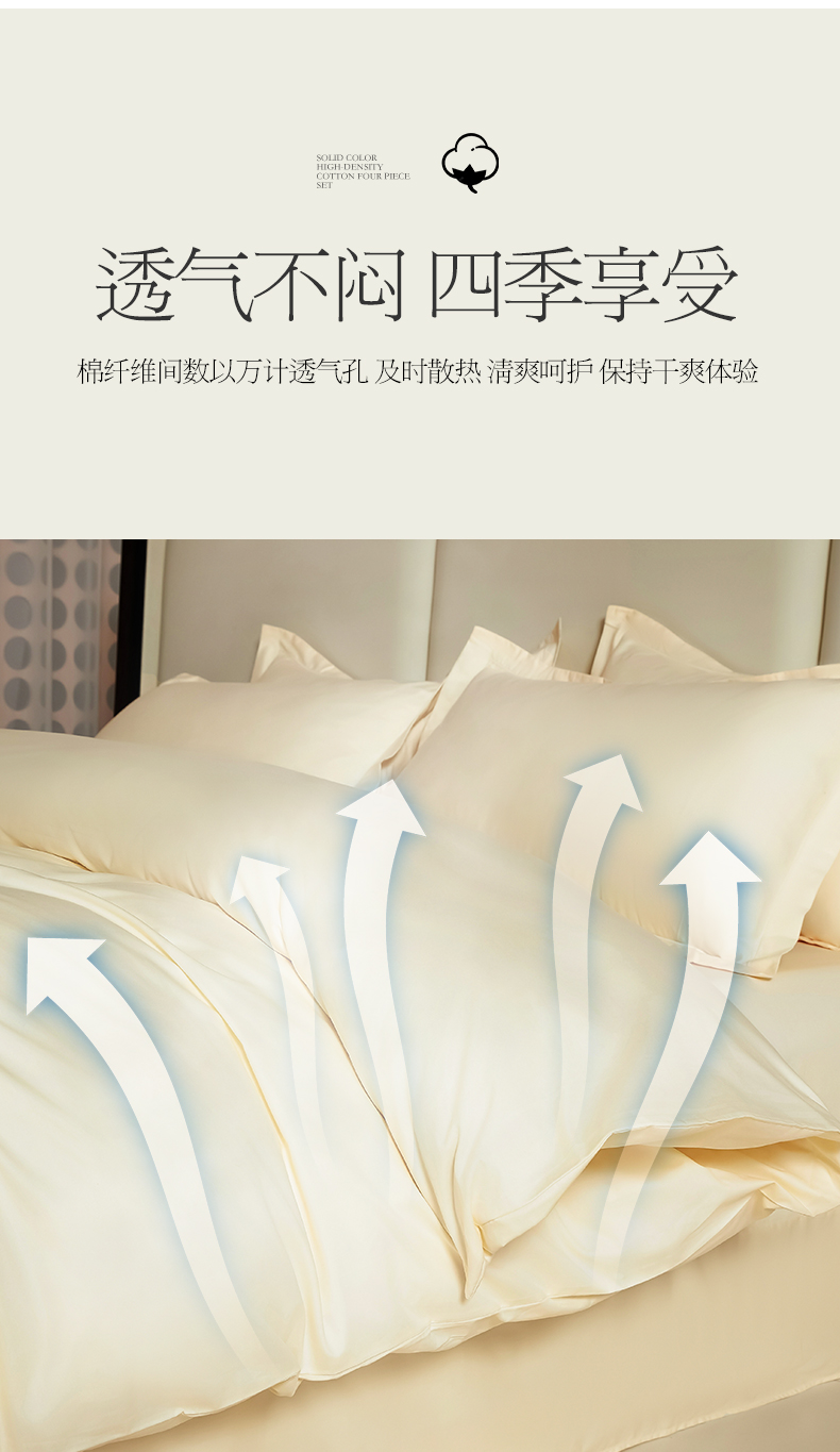 当前位置: 91家纺网 > 商品网购 > 床品套件 > 四件套 > 全棉普通四件套 > 名优家纺 2024新款纯色13374高密全棉四件套 象牙白