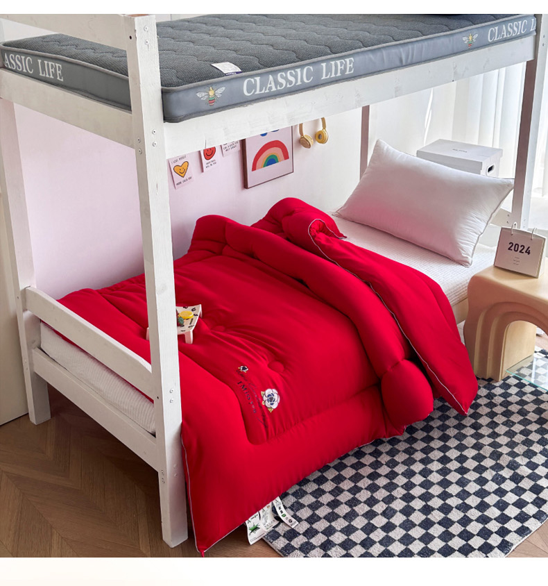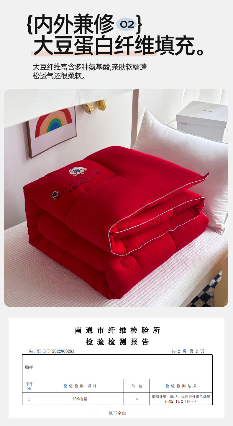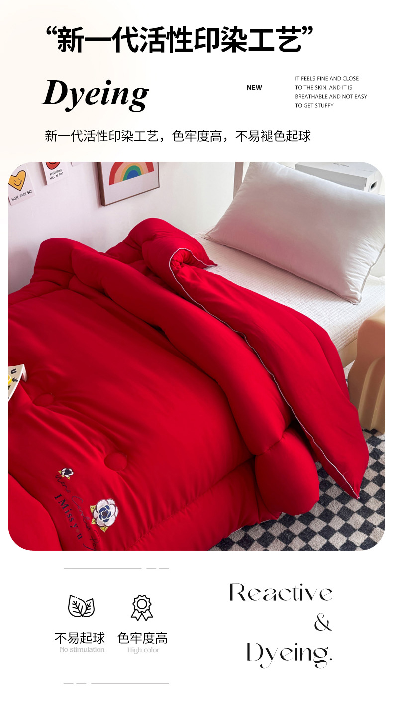 • 91家纺网 家纺一手货源 找家纺 招财狼家纺  2024新款水洗磨毛学生大豆被夏被春秋被多被芯被子 山茶花 大红