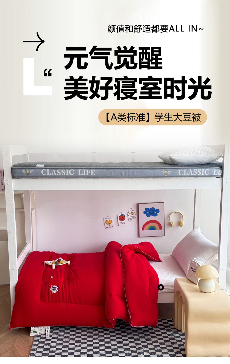 当前位置: 91家纺网 > 商品网购 > 被子 > 冬被 > 招财狼家纺 2024新款水洗磨毛学生大豆被夏被春秋被多被芯被子 山茶花 大红