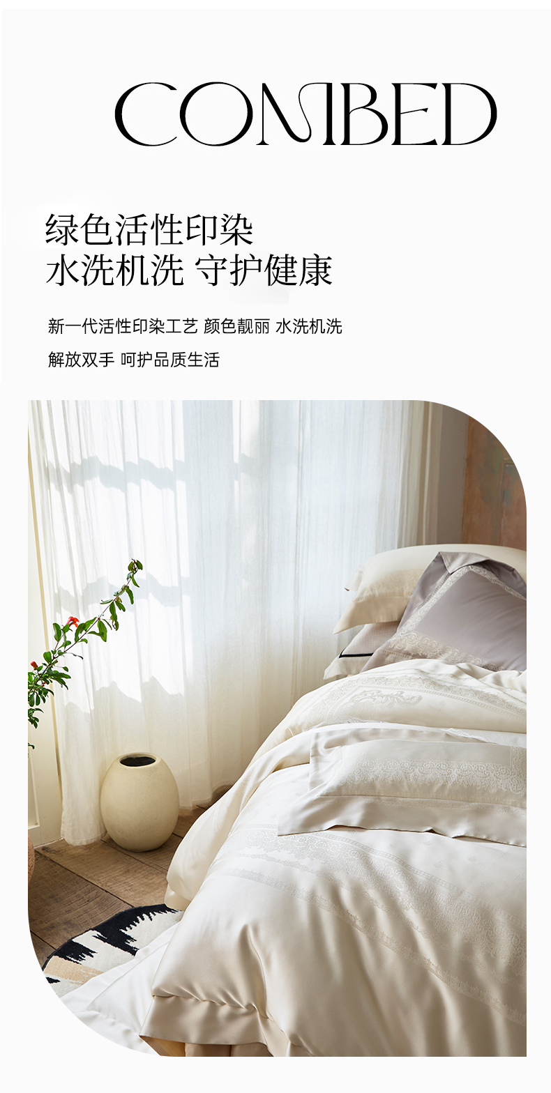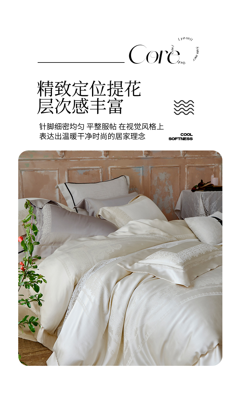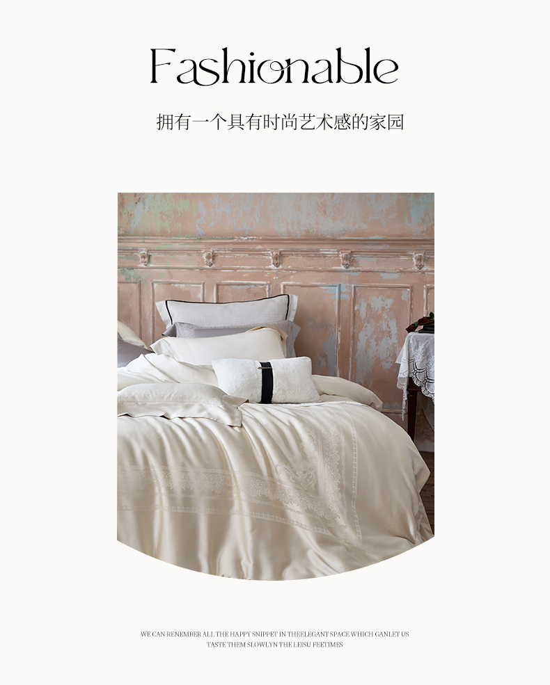 (总)嘉恋 2023新款100支全棉提花镂空四件套送包装,薄暮金,羽叶白,斑马纹,罗勒灰,西柚粉