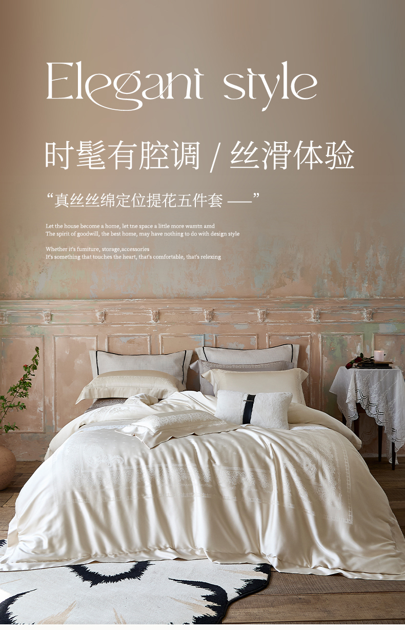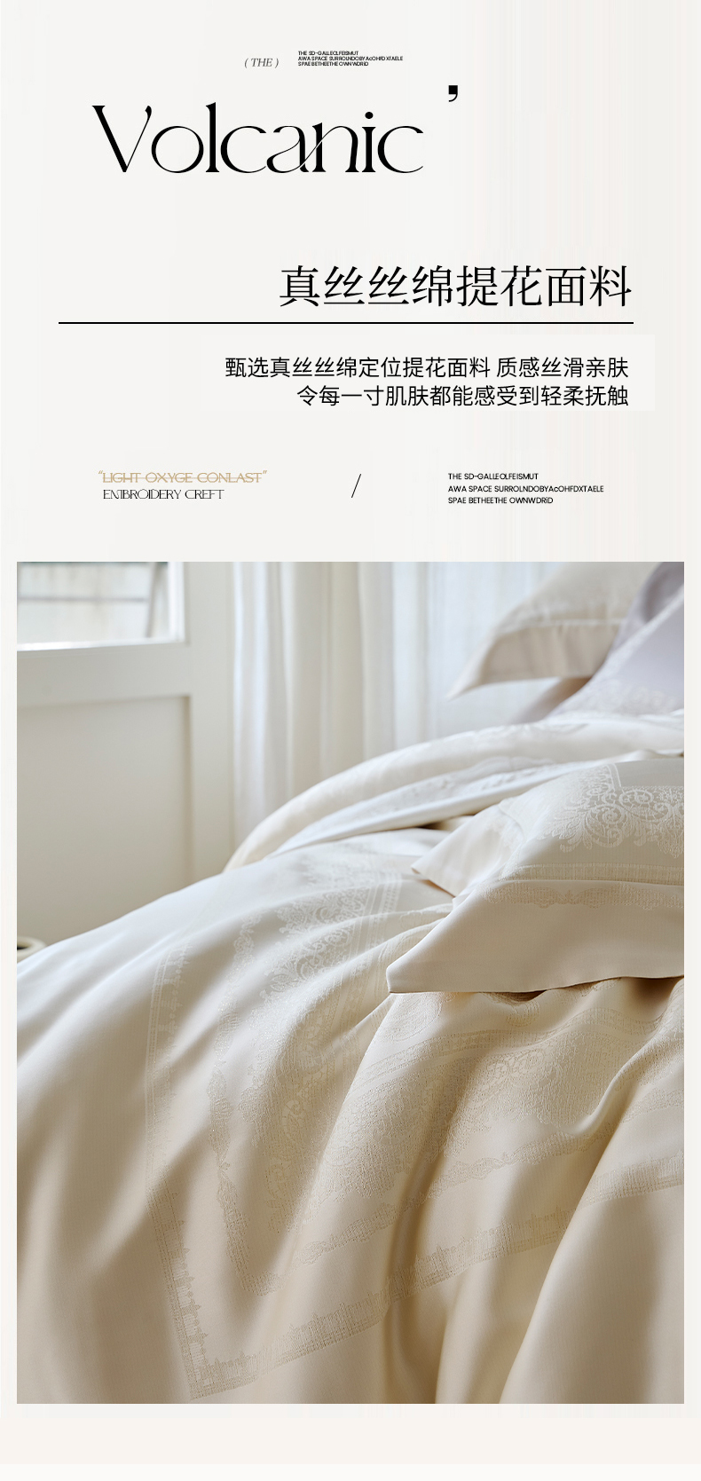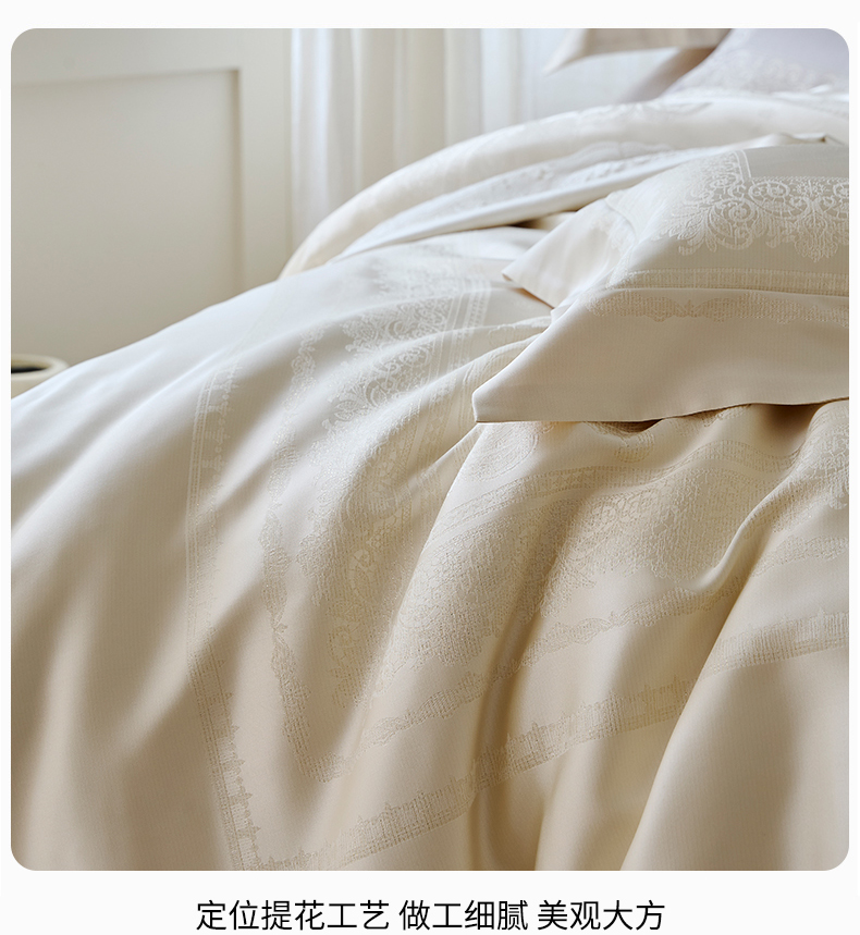 嘉恋家纺 2024新款真丝丝绵定位提花五件套 米黄