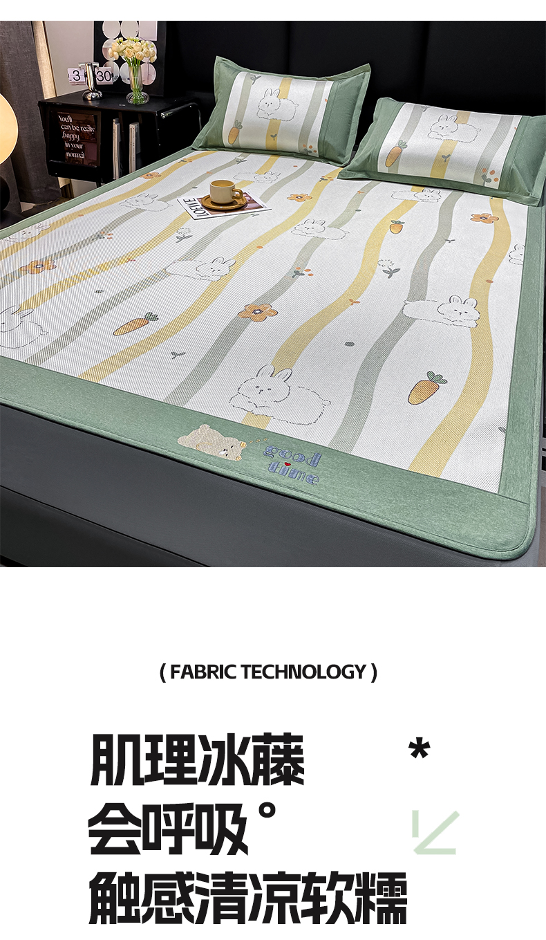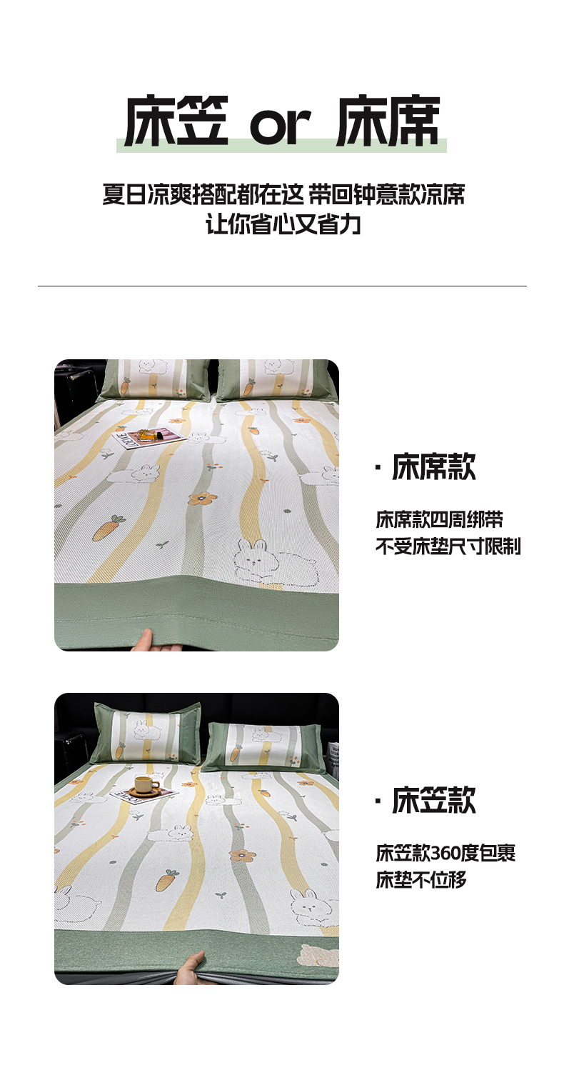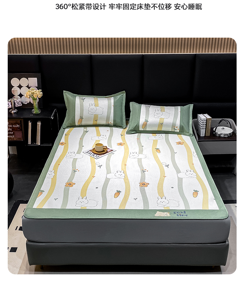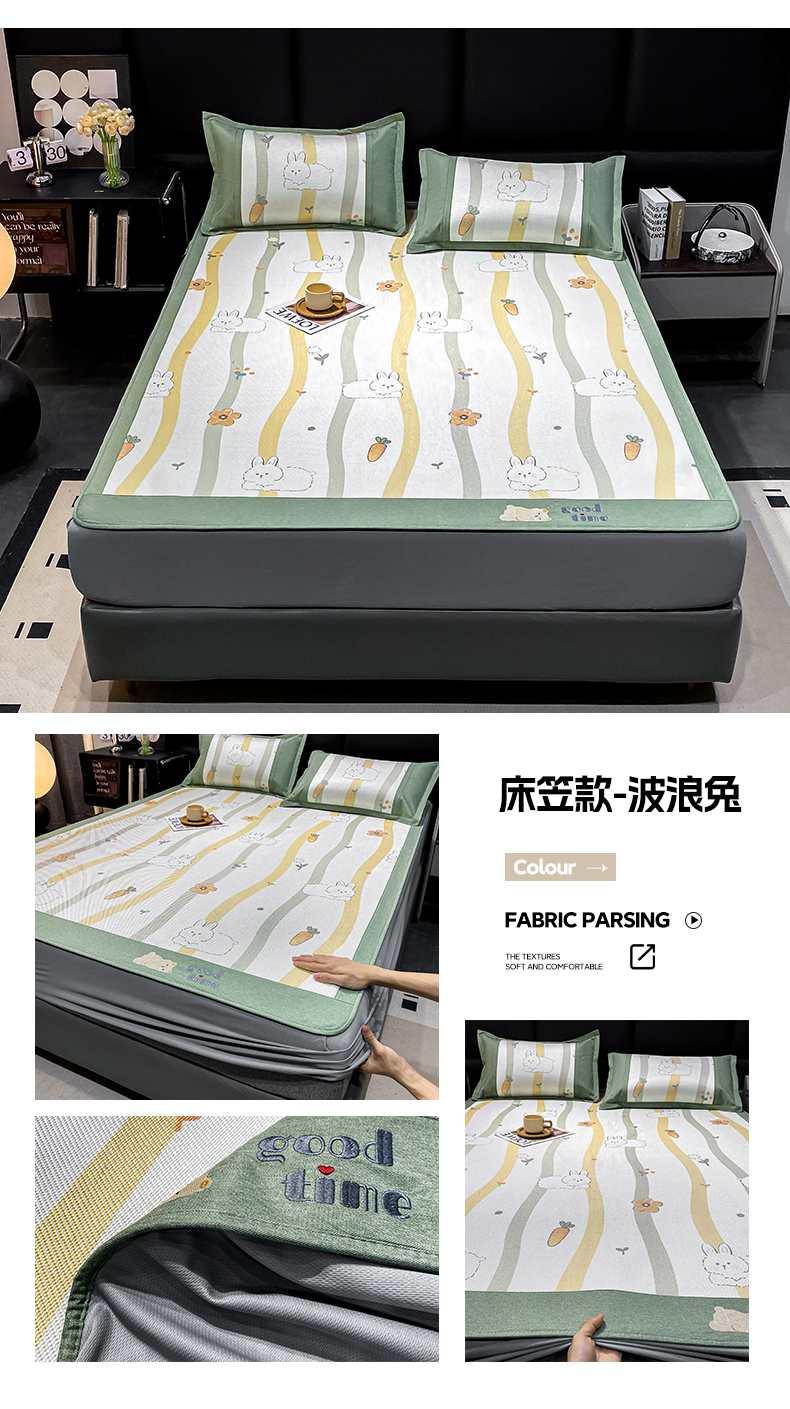 商品名称:宜家坊 2024新款A类抗菌数码印花冰藤凉席 床笠款-波浪兔