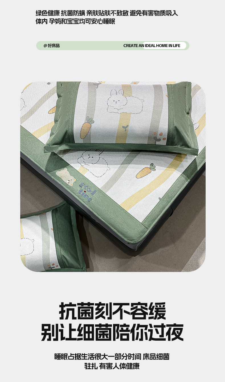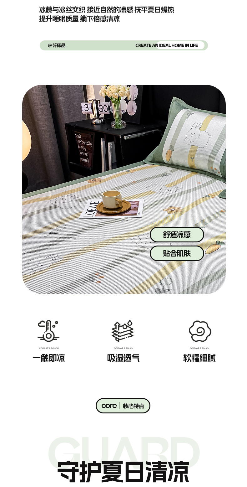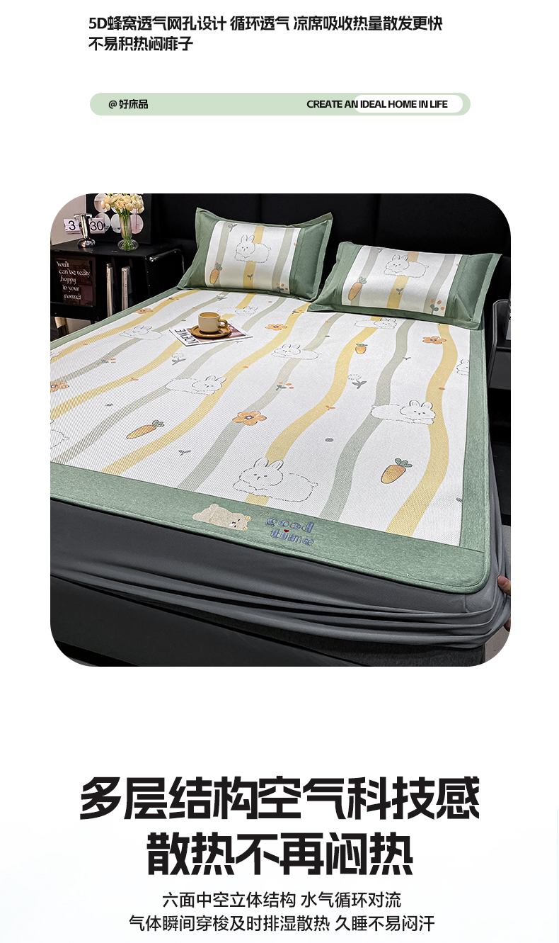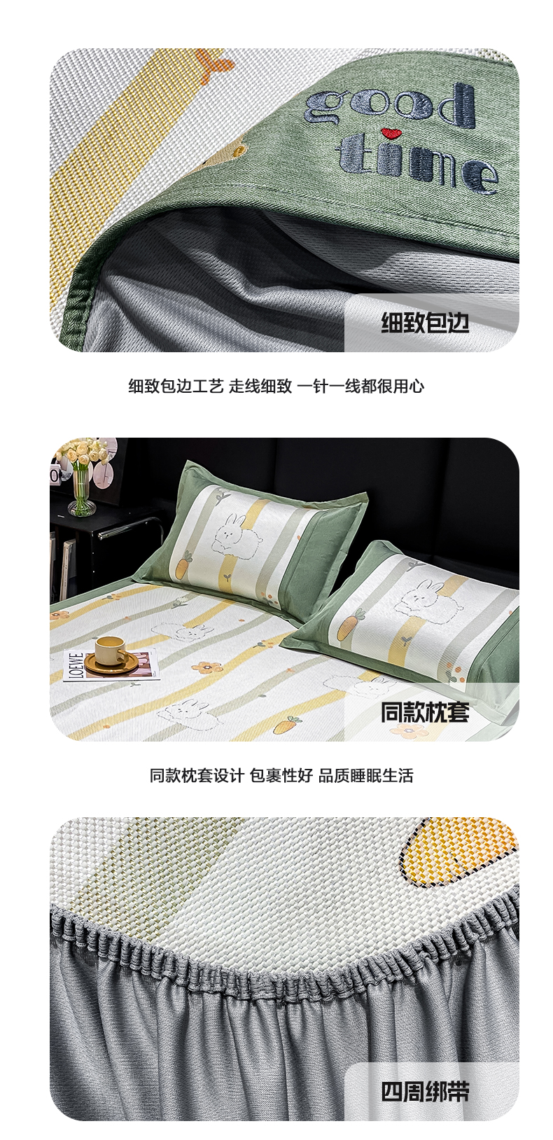 商品名称:宜家坊 2024新款A类抗菌数码印花冰藤凉席 床笠款-波浪兔