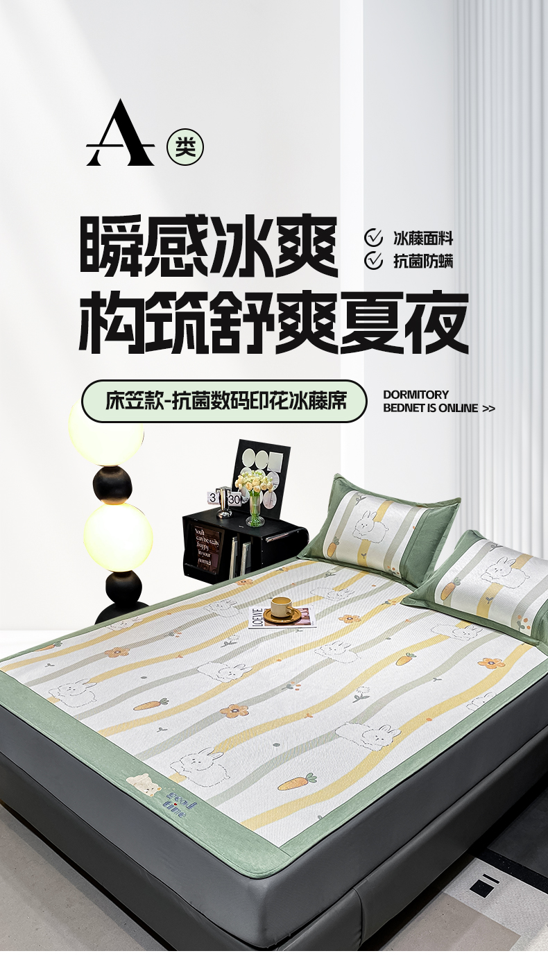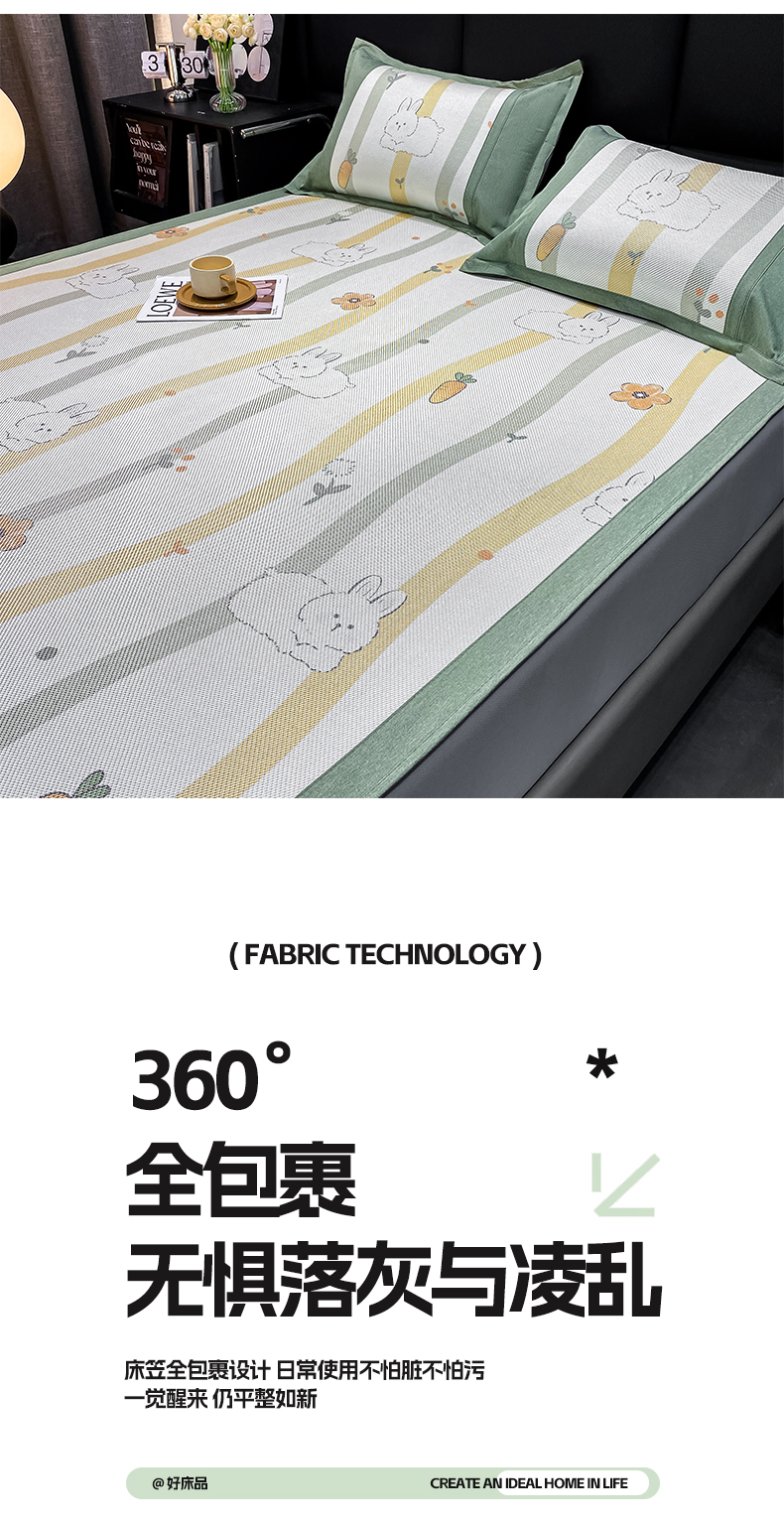 宜家坊 2024新款A类抗菌数码印花冰藤凉席 床笠款-波浪兔