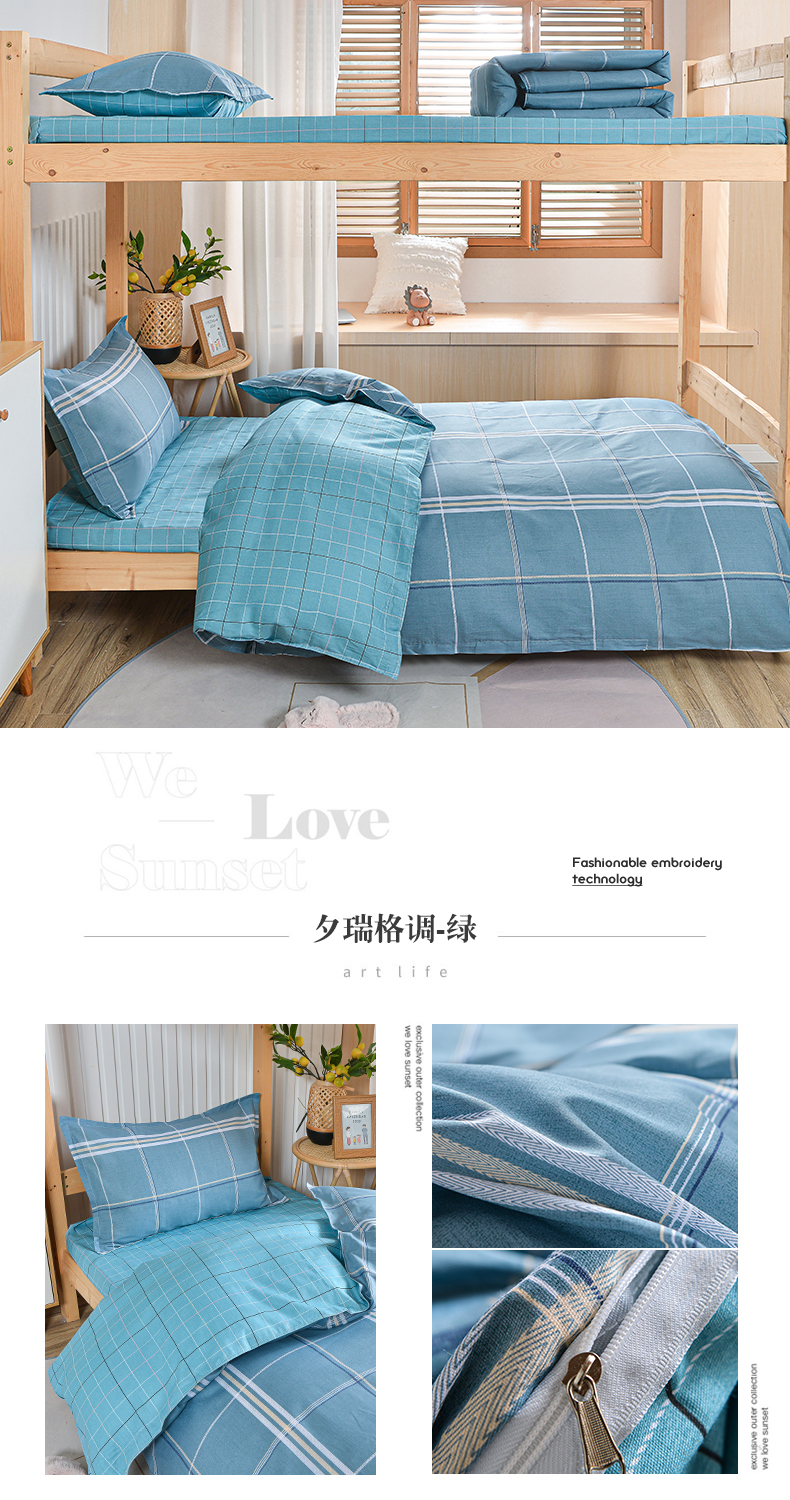 2026新款宿舍上下铺12868纯棉三件套 夕瑞格调-绿