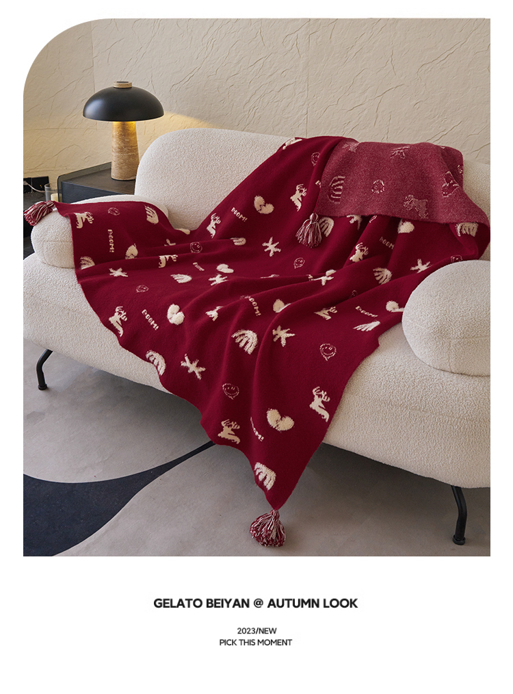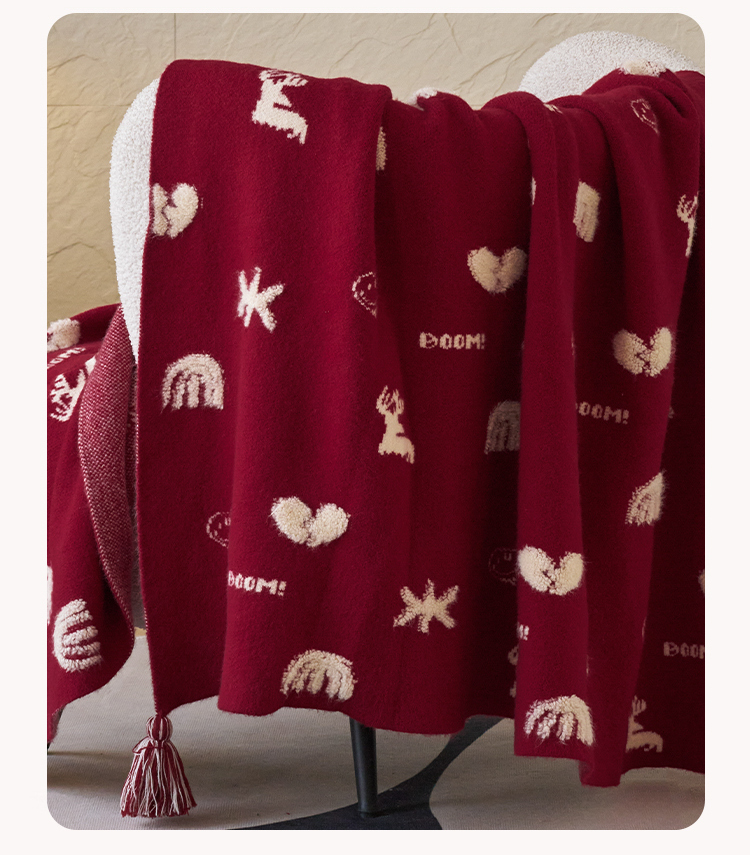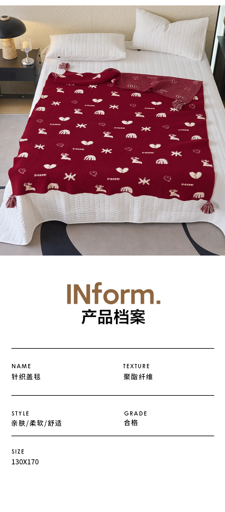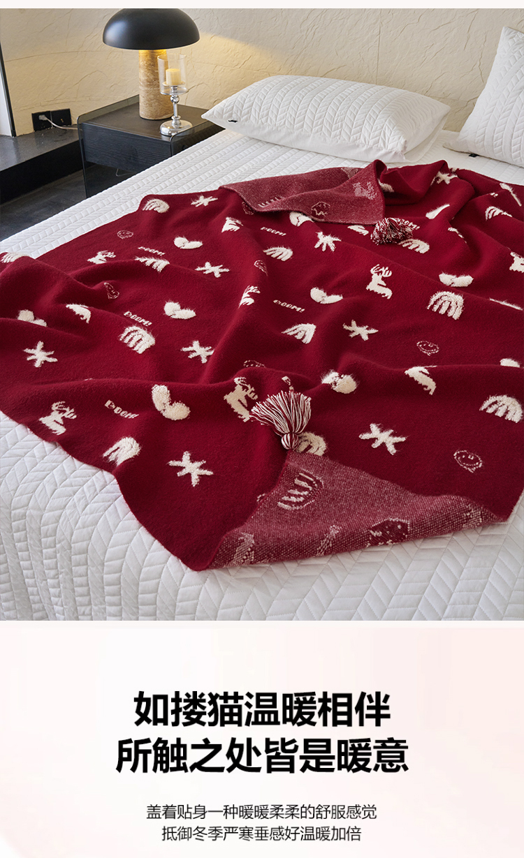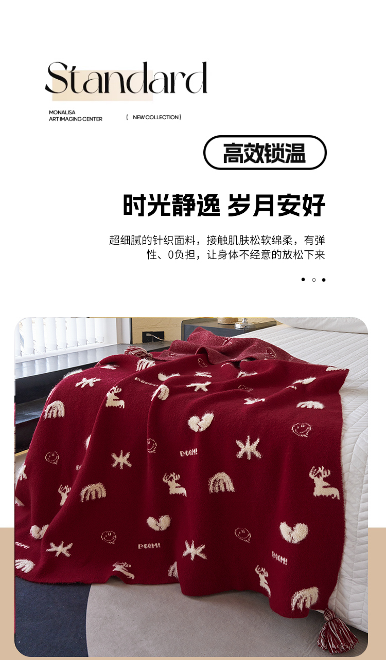 (总)苏艺针织盖毯 2024新款针织圣诞新年款毛毯,冰雪麋鹿大,冰雪麋鹿小,冰雪雪花,两情相悦