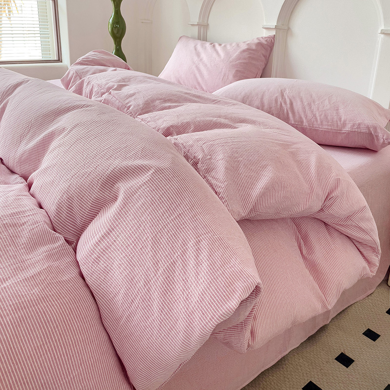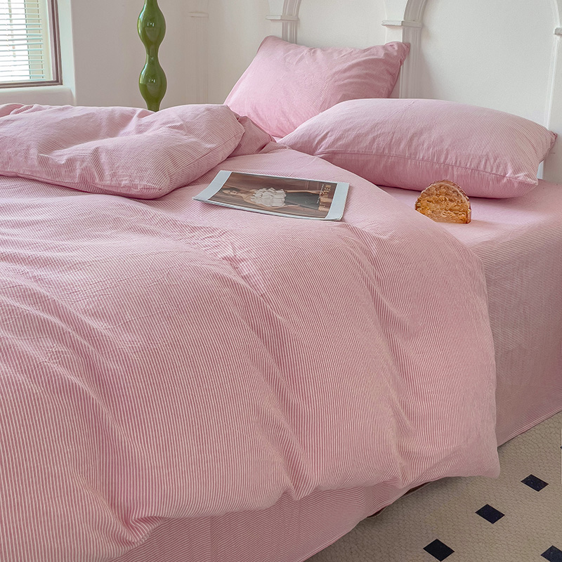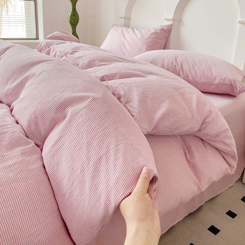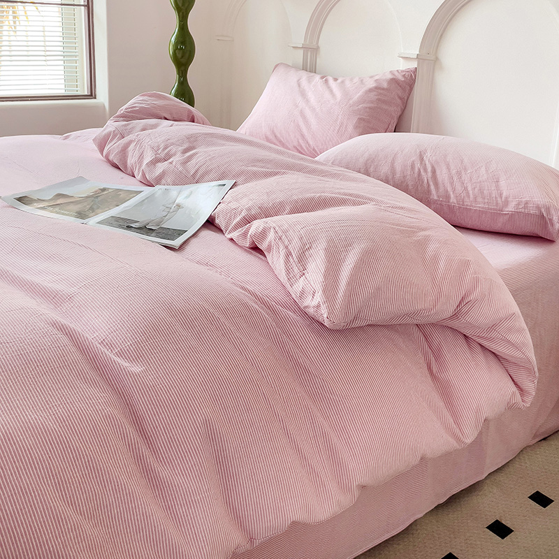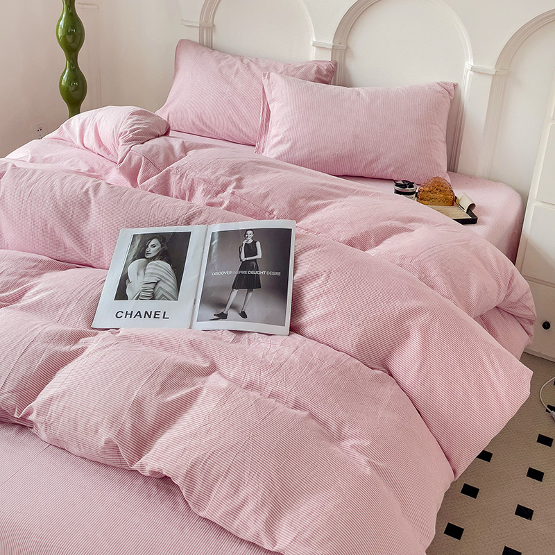 商品名称:呗旺鹿 2024新款A类40支全棉色织水洗棉四件套全棉四件套纯棉四件套无印风 魅力条纹豆沙