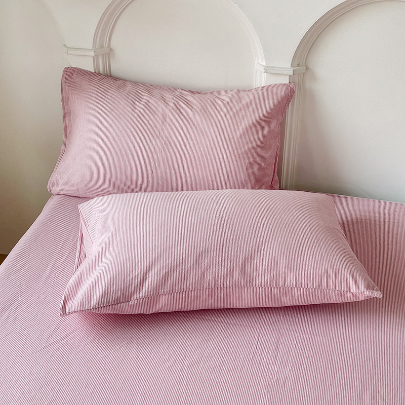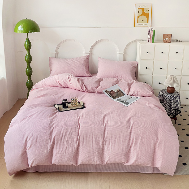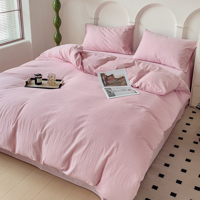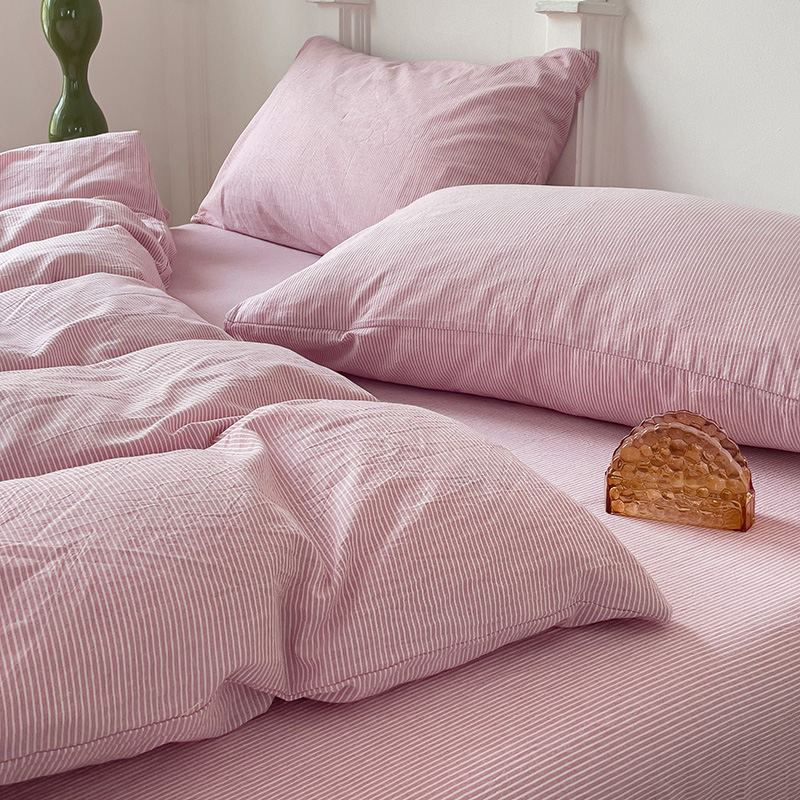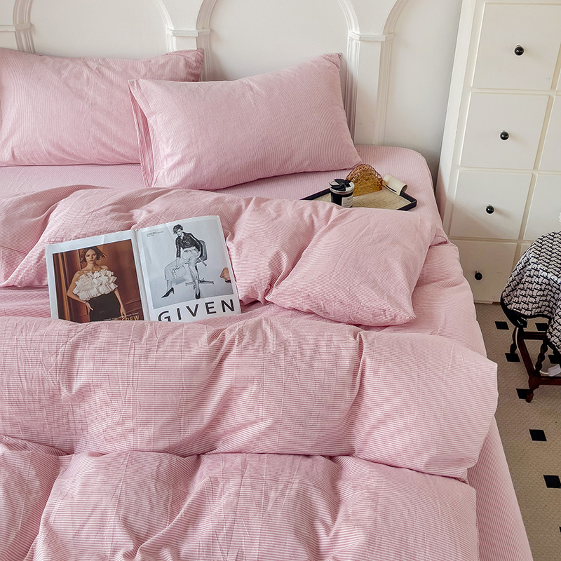 商品名称:呗旺鹿 2024新款A类40支全棉色织水洗棉四件套全棉四件套纯棉四件套无印风 魅力条纹豆沙