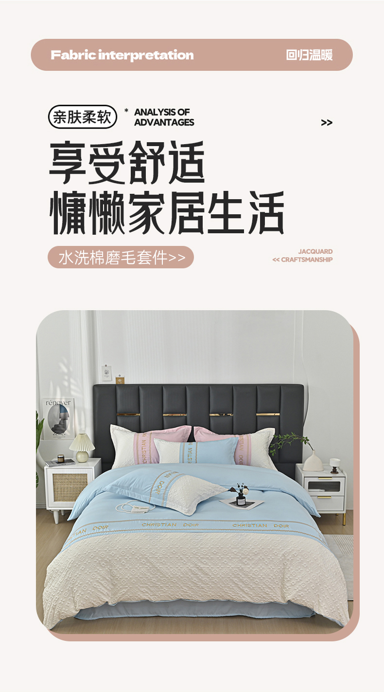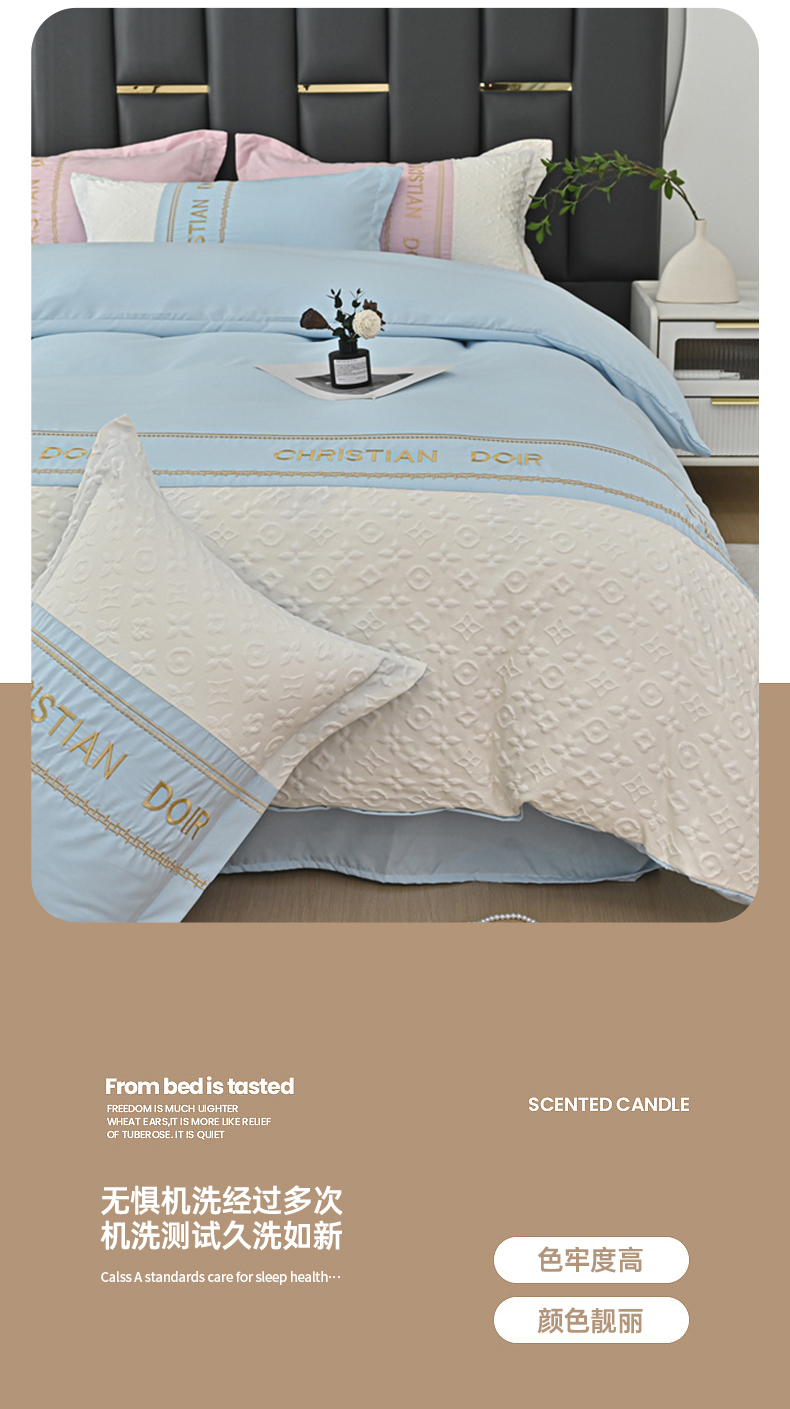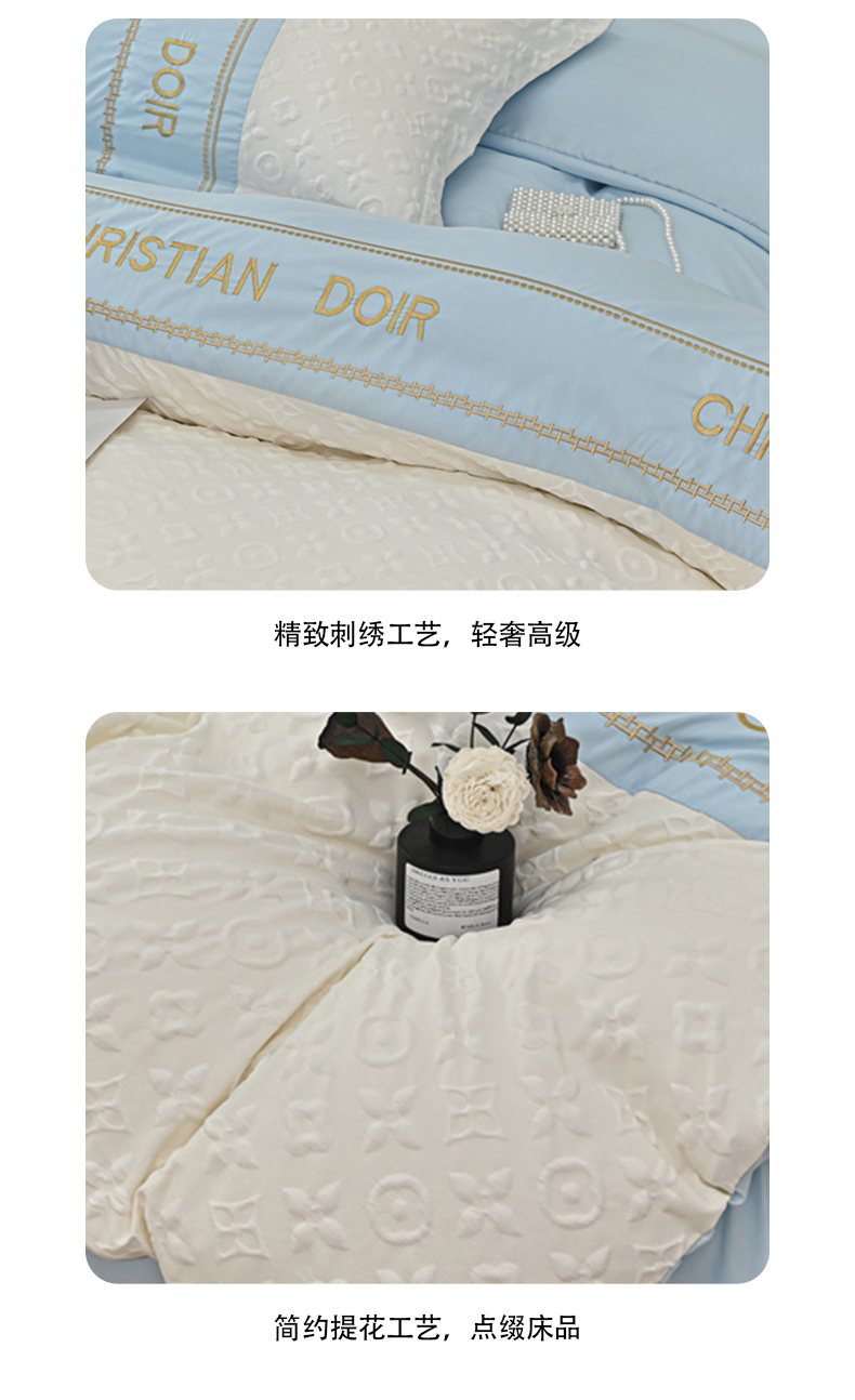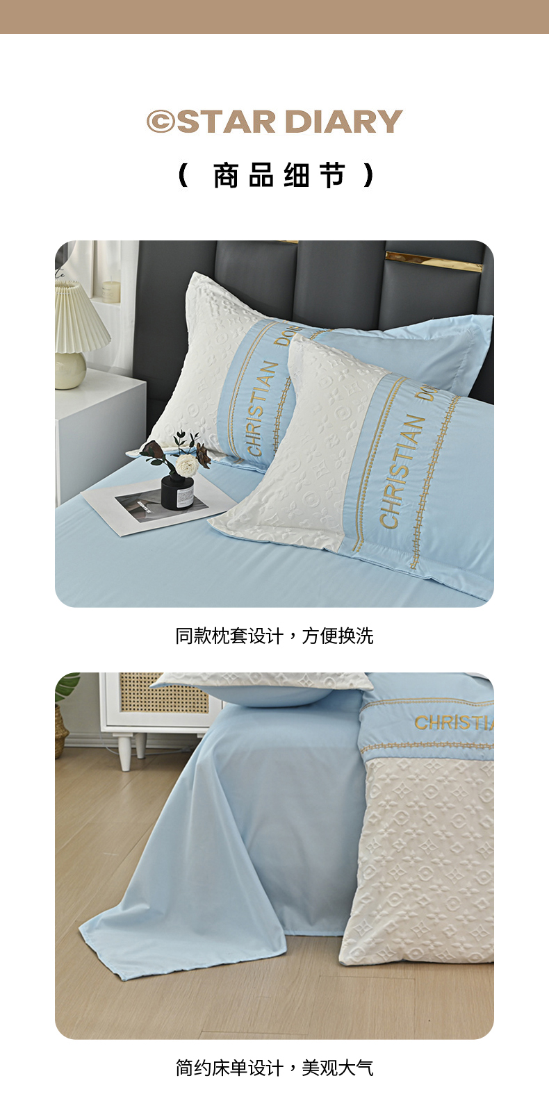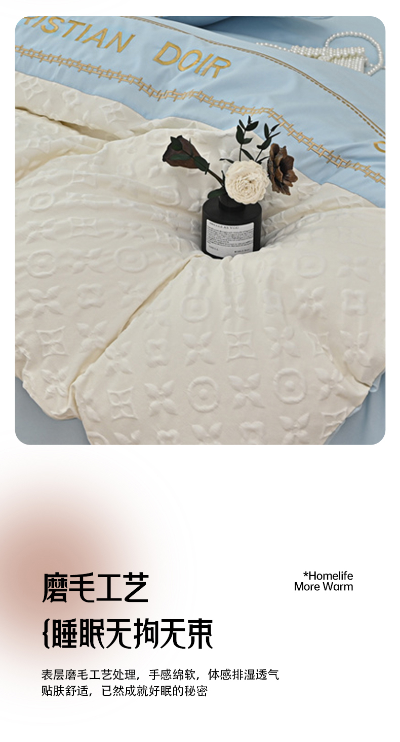 富宁家纺 2025新款直播爆款水洗棉磨毛刺绣浮雕四件套-慕兰迪(提供买家秀) 天空蓝