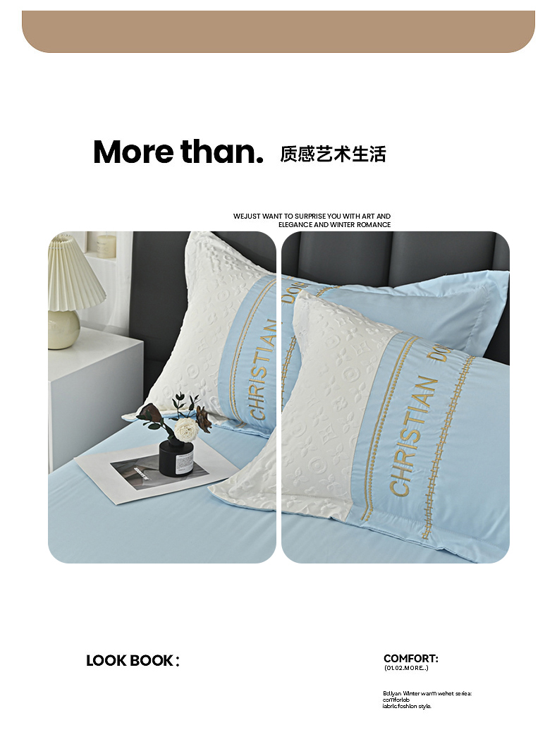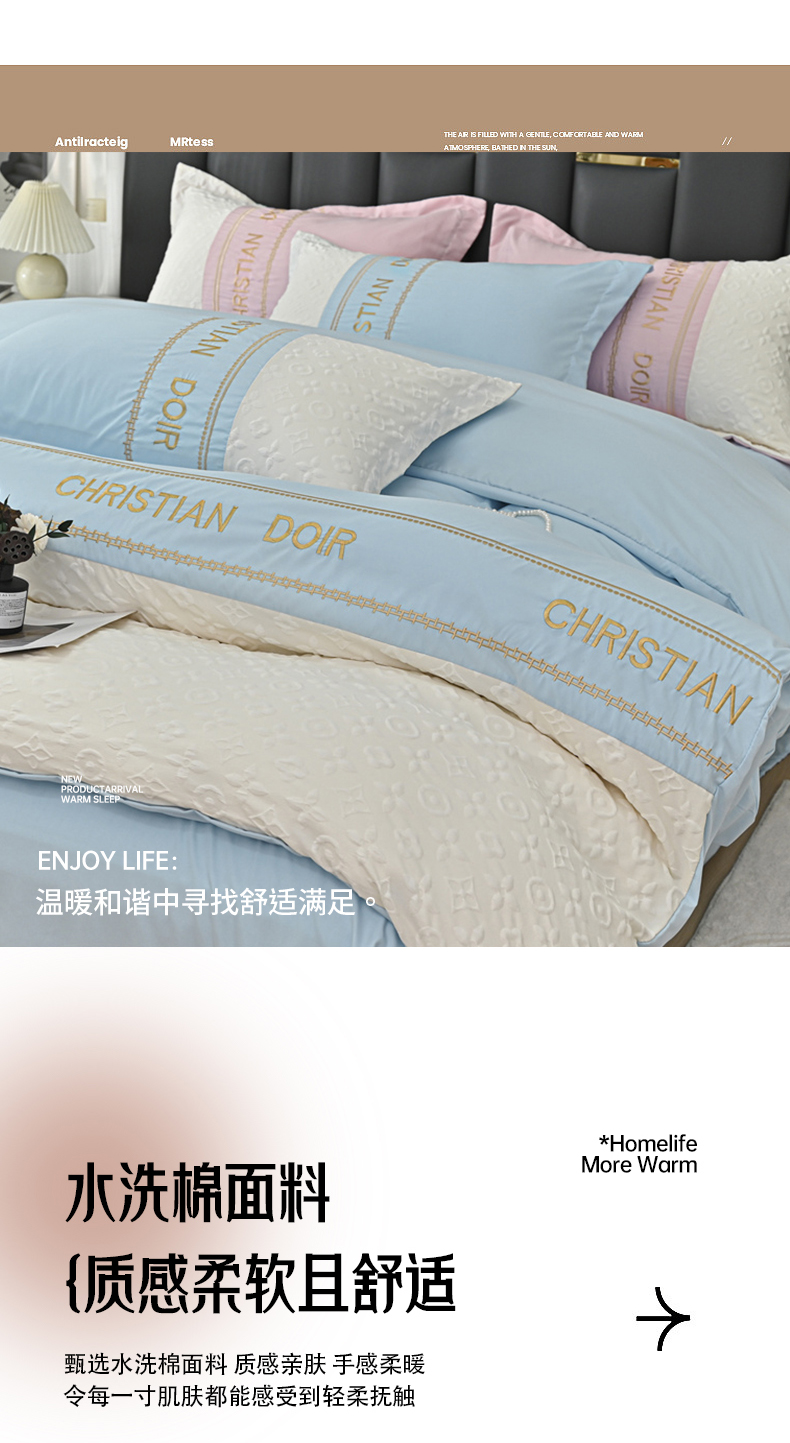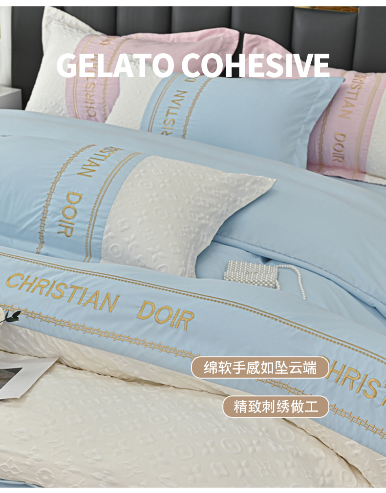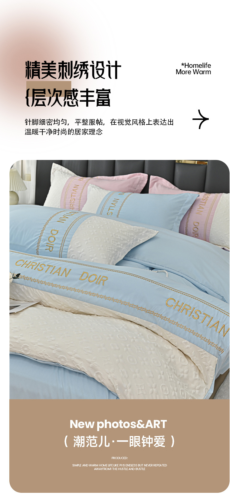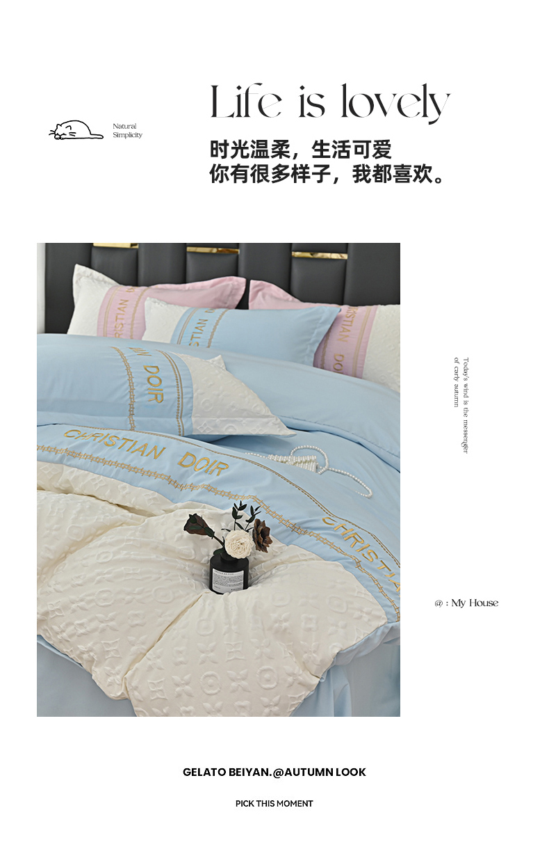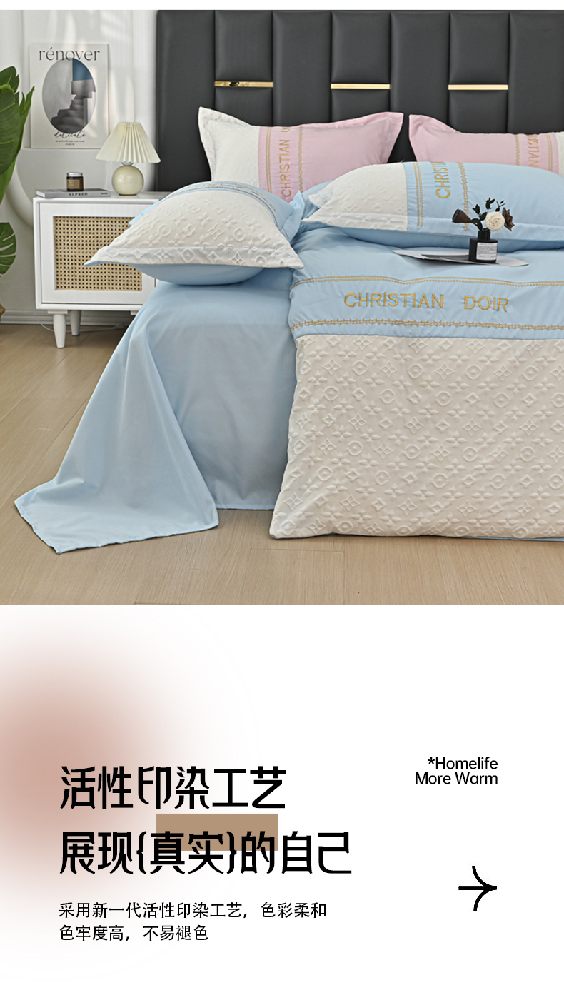 富宁家纺 2025新款直播爆款水洗棉磨毛刺绣浮雕四件套-慕兰迪(提供买家秀) 天空蓝