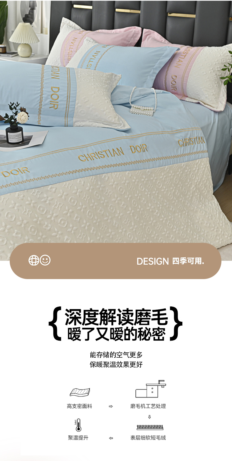 (总)富宁家纺 2025新款立体雕花牛奶绒绣花四件套-洛卡玫瑰系列,洛卡白,玫瑰灰,洛卡咖,玫瑰粉,洛卡蓝