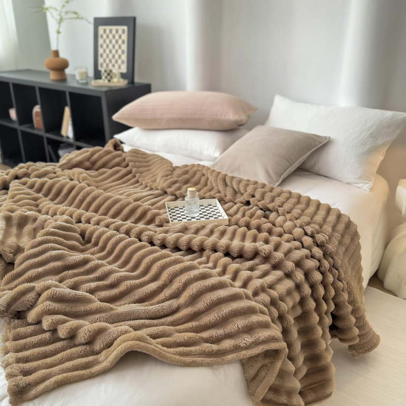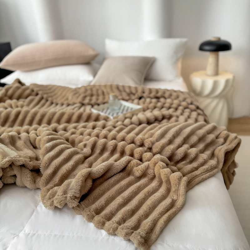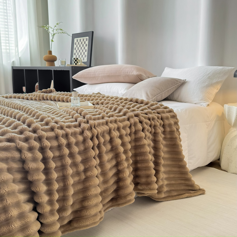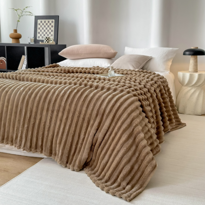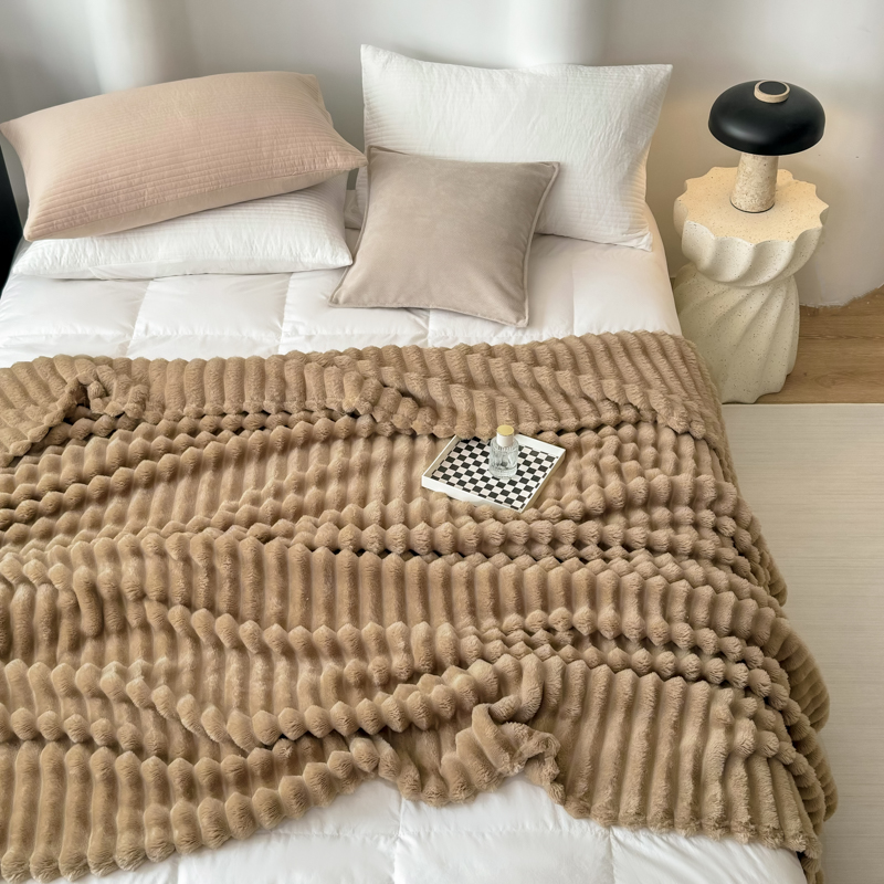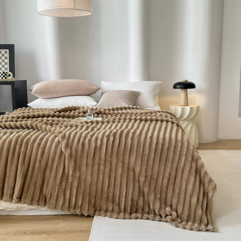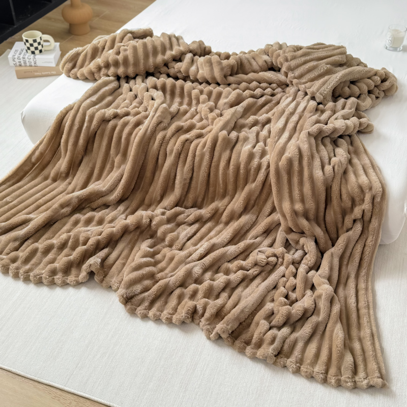 羋多 2024新款跨境仿兔毛绒多功能毛毯高克重魔法绒4公分宽抽条毛毯 洛可可