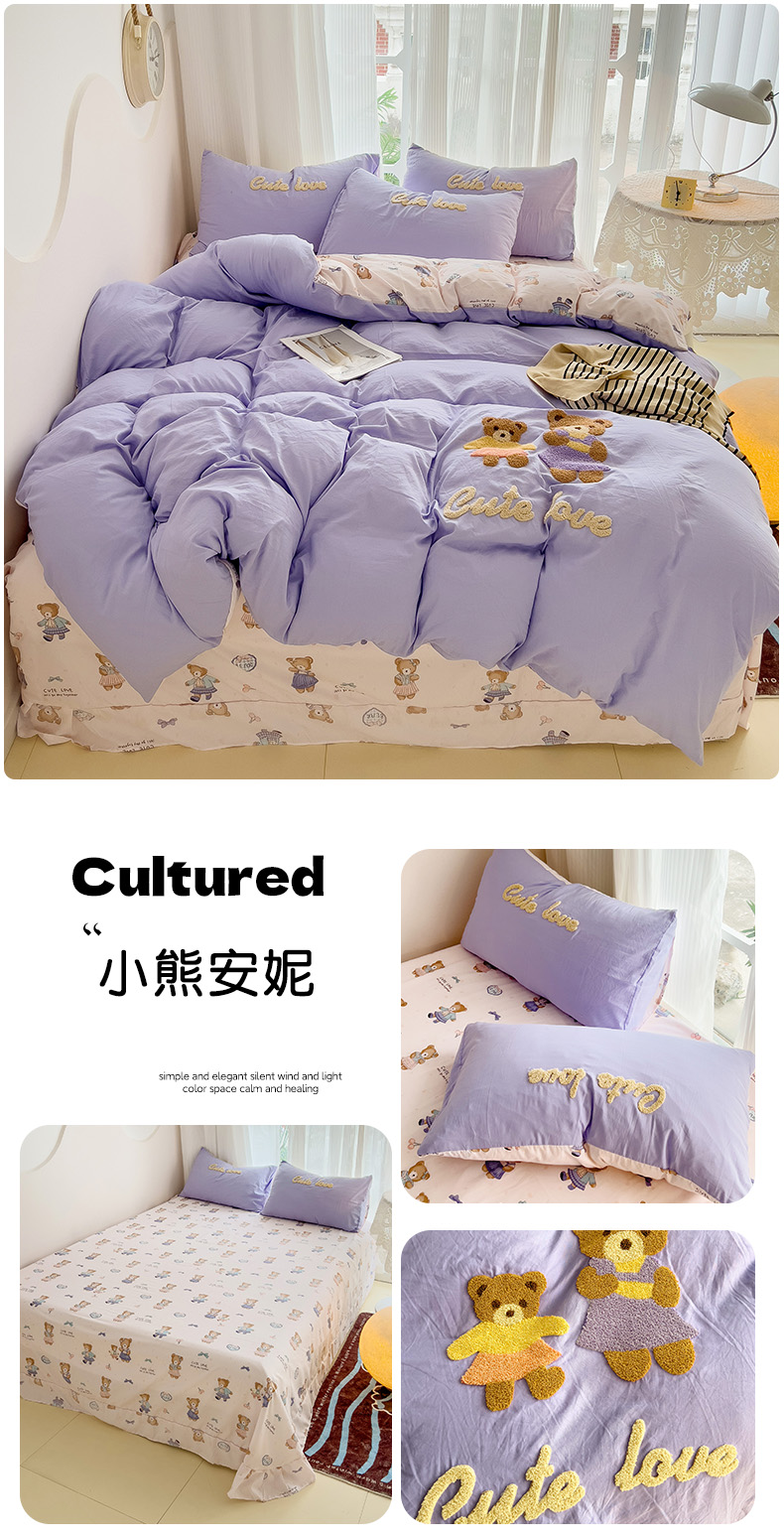 当前位置: 91家纺网 > 商品网购 > 床品套件 > 四件套 > 其它四件套 > 玉海棠家纺 2024新款超柔云朵棉毛巾绣四件套 小熊安妮