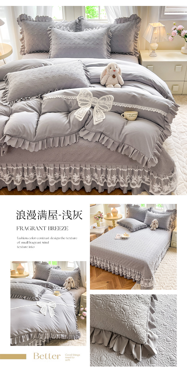 商品名称:唐人居 2025新款韩式花边蝴蝶结床盖四件套-浪漫满屋 浪漫满屋-浅灰