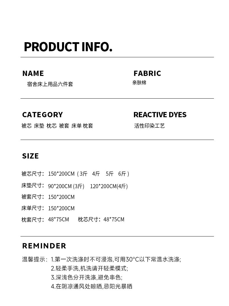 0.9m床垫上下铺六件套3斤被芯 | ¥94.00 |