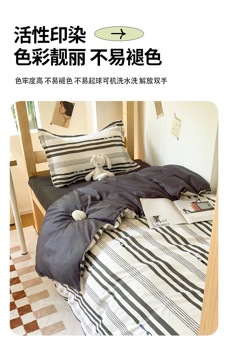 当前位置: 91家纺网 > 商品网购 > 床品套件 > 多件套 > 多件套 > 雅蔓依 2025新款亲肤芦荟棉宿舍上下铺单人床学生三件套六件套 罗拉