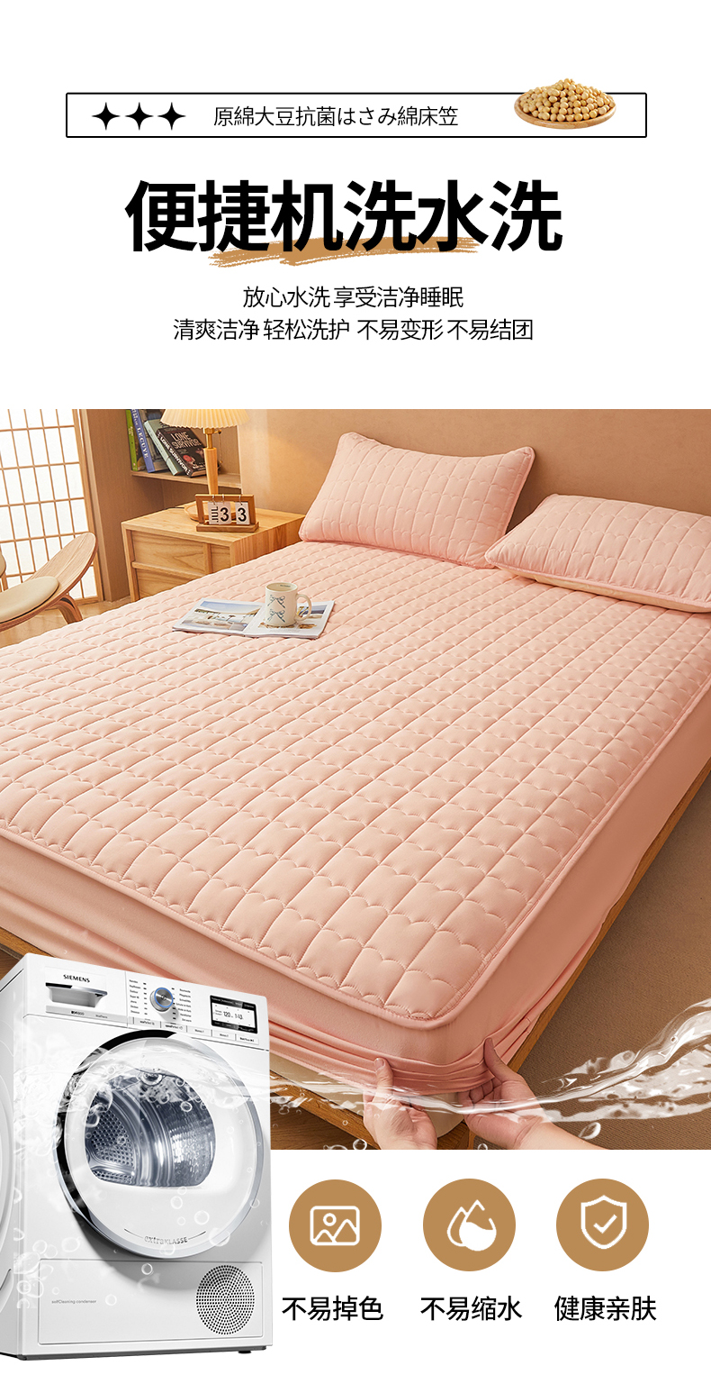 (总)伊人坊 2024新款原棉大豆防水床护垫,明月白,碧水青,布朗灰,玫瑰粉,米杏色,苹果绿