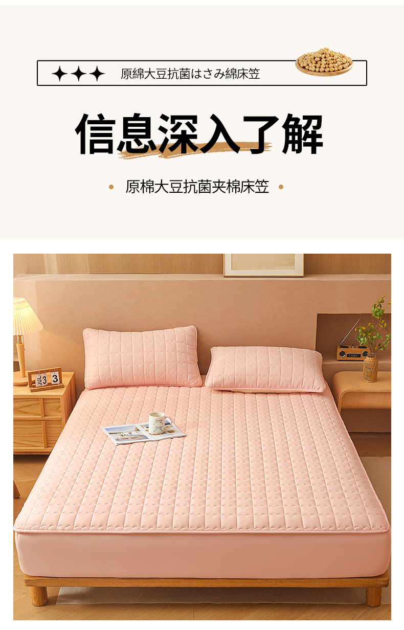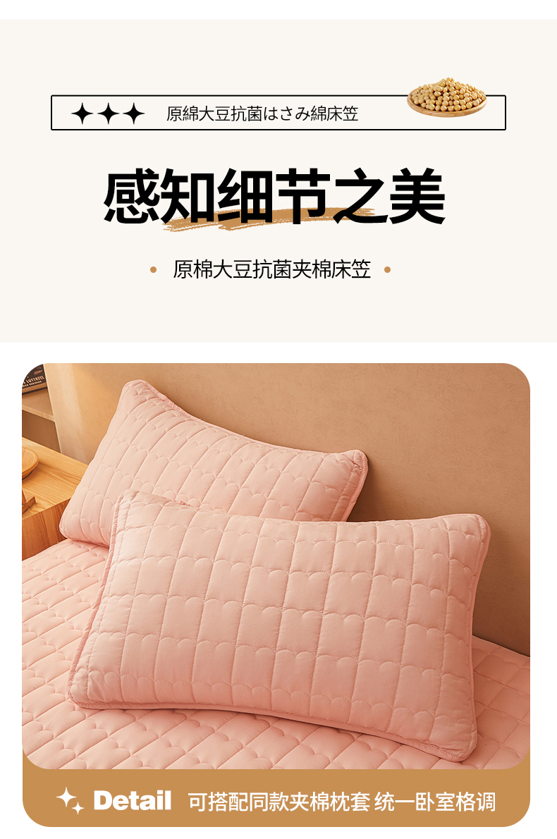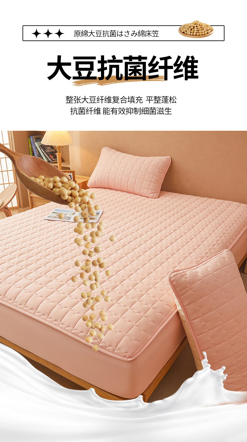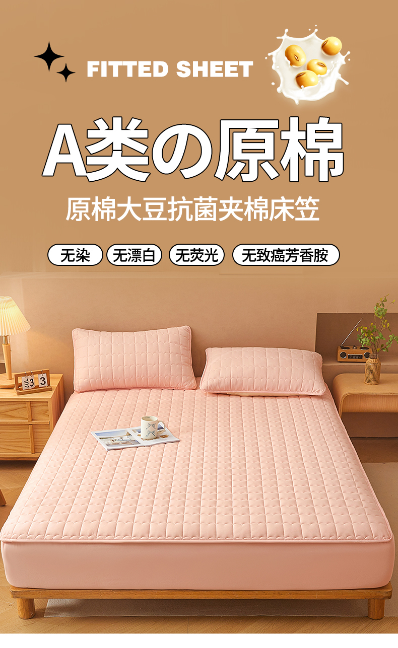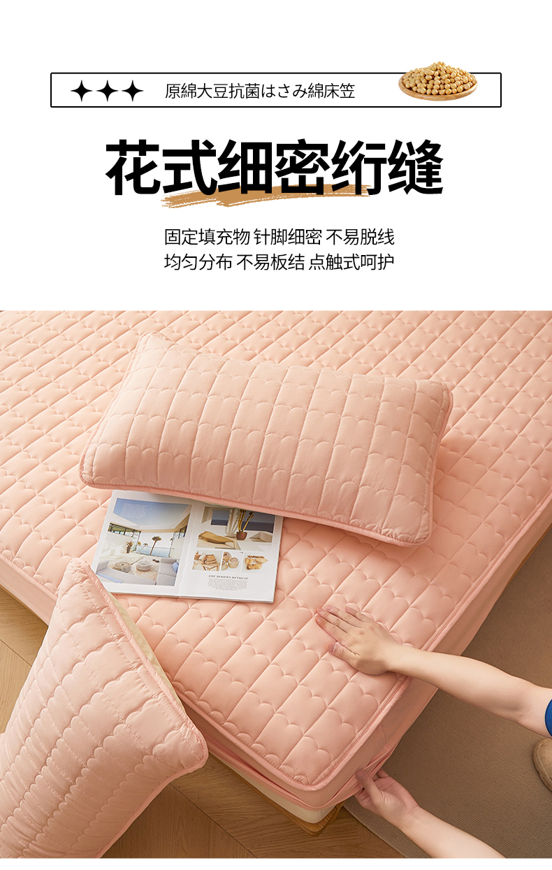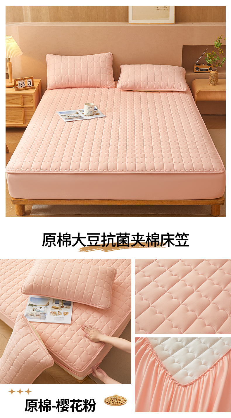 商品名称:伊人坊 2024新款原棉大豆夹棉床笠 原棉-樱花粉