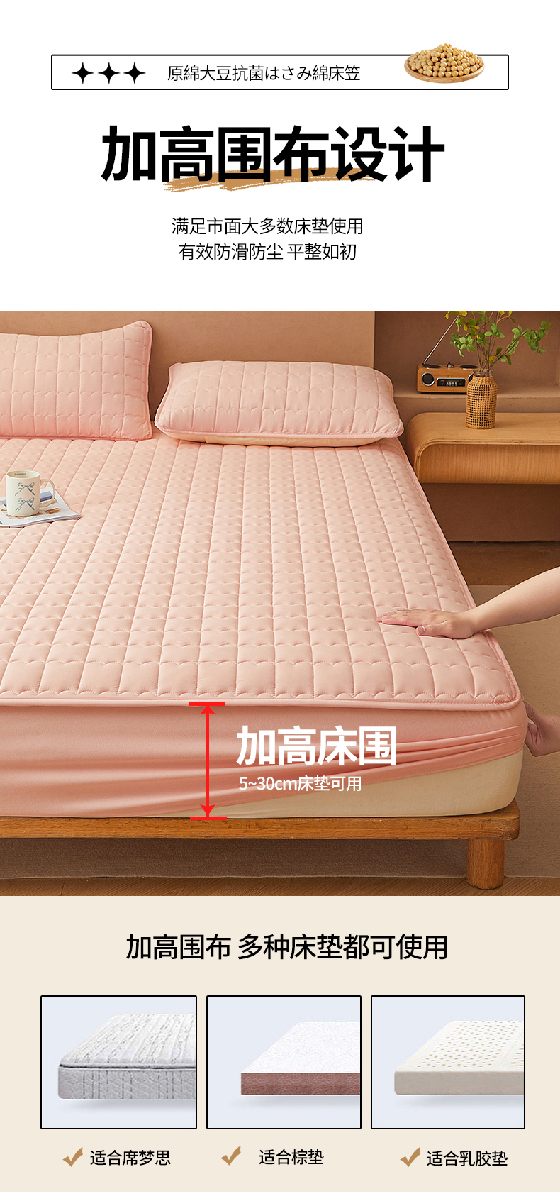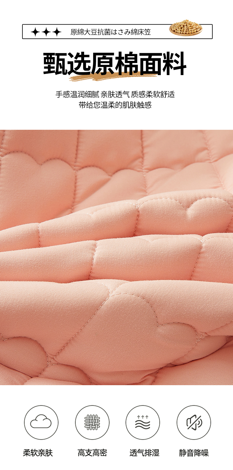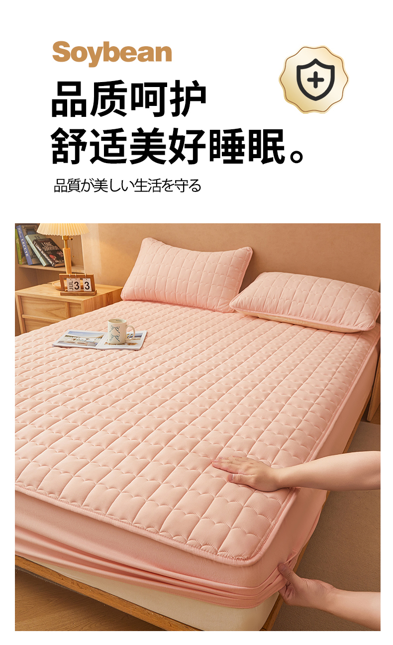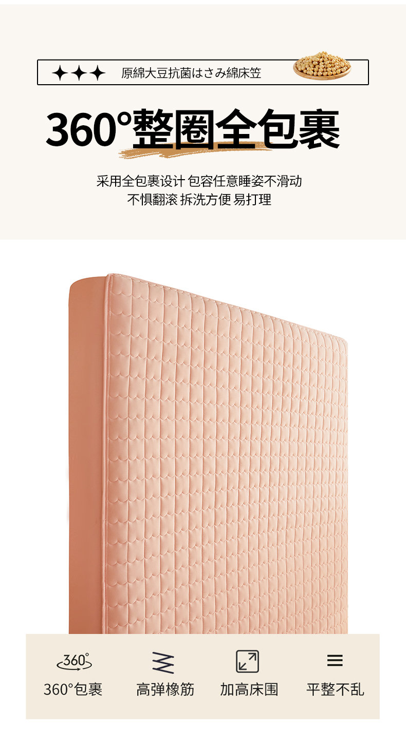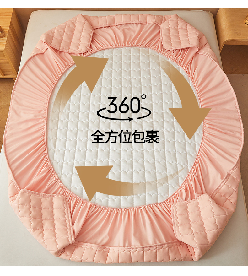 商品名称:伊人坊 2024新款原棉大豆夹棉床笠 原棉-樱花粉