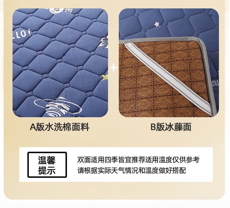 当前位置: 91家纺网 > 商品网购 > 床垫/床褥 > 普通床垫 > 2025新款水洗棉冰藤凉席款床垫-学生床 凉席款加厚月光舞曲