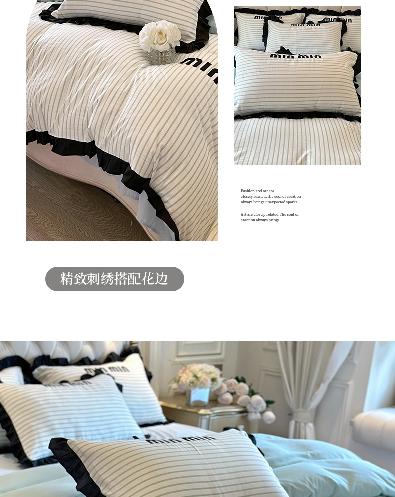 (总)苏源家居 2025新款韩式大花边ins风妮可公主风四件套,军绿色,白色,粉色,黑色,卡其色,蓝色