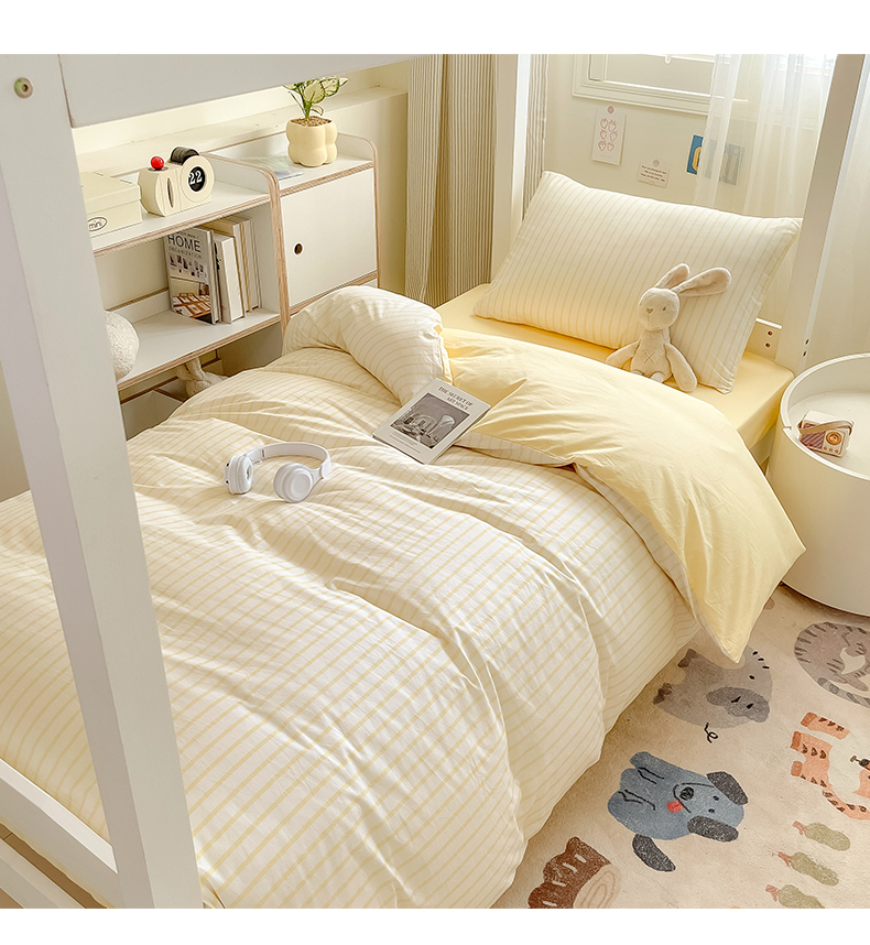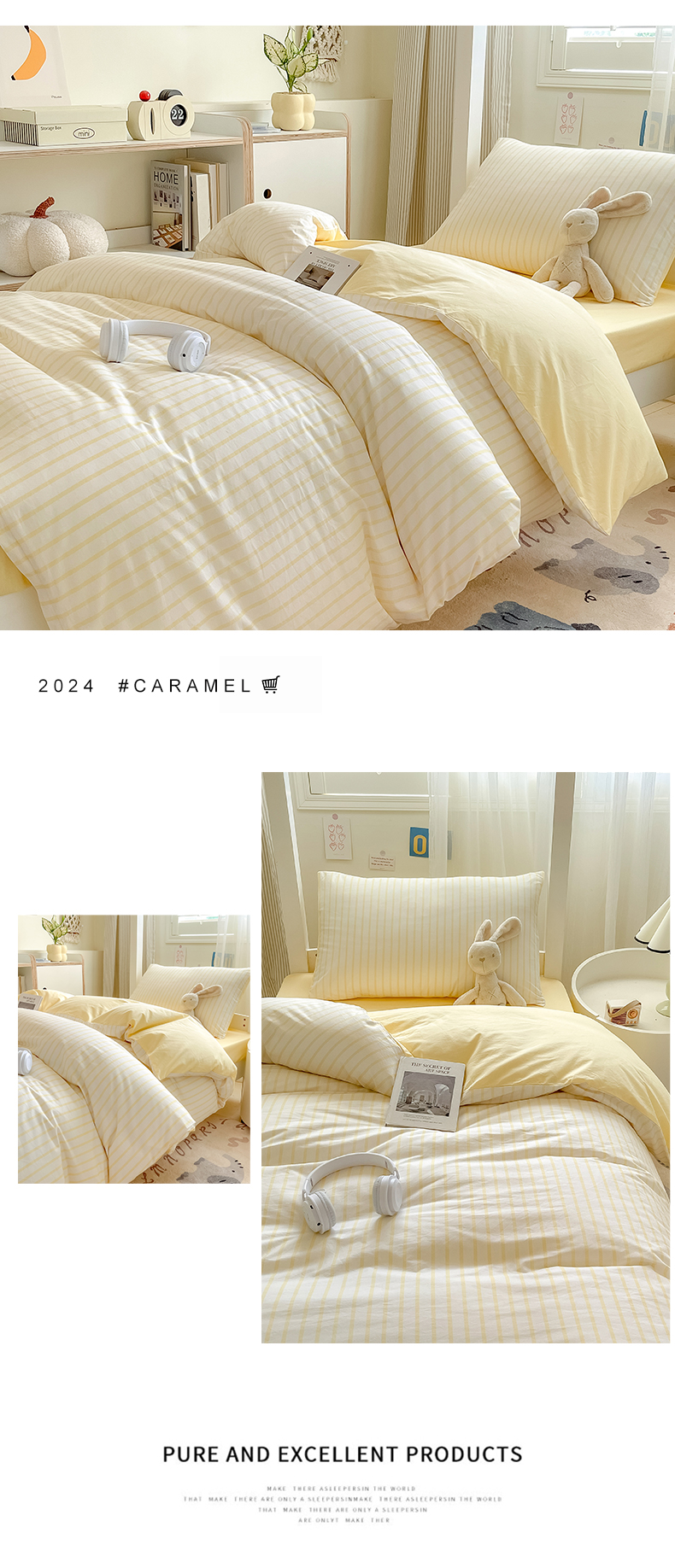 Mr.pig猪先生水洗棉 2024新款A类小清新全棉四件套纯棉床单被套床笠学生宿舍三件套床床上用品 淡黄条