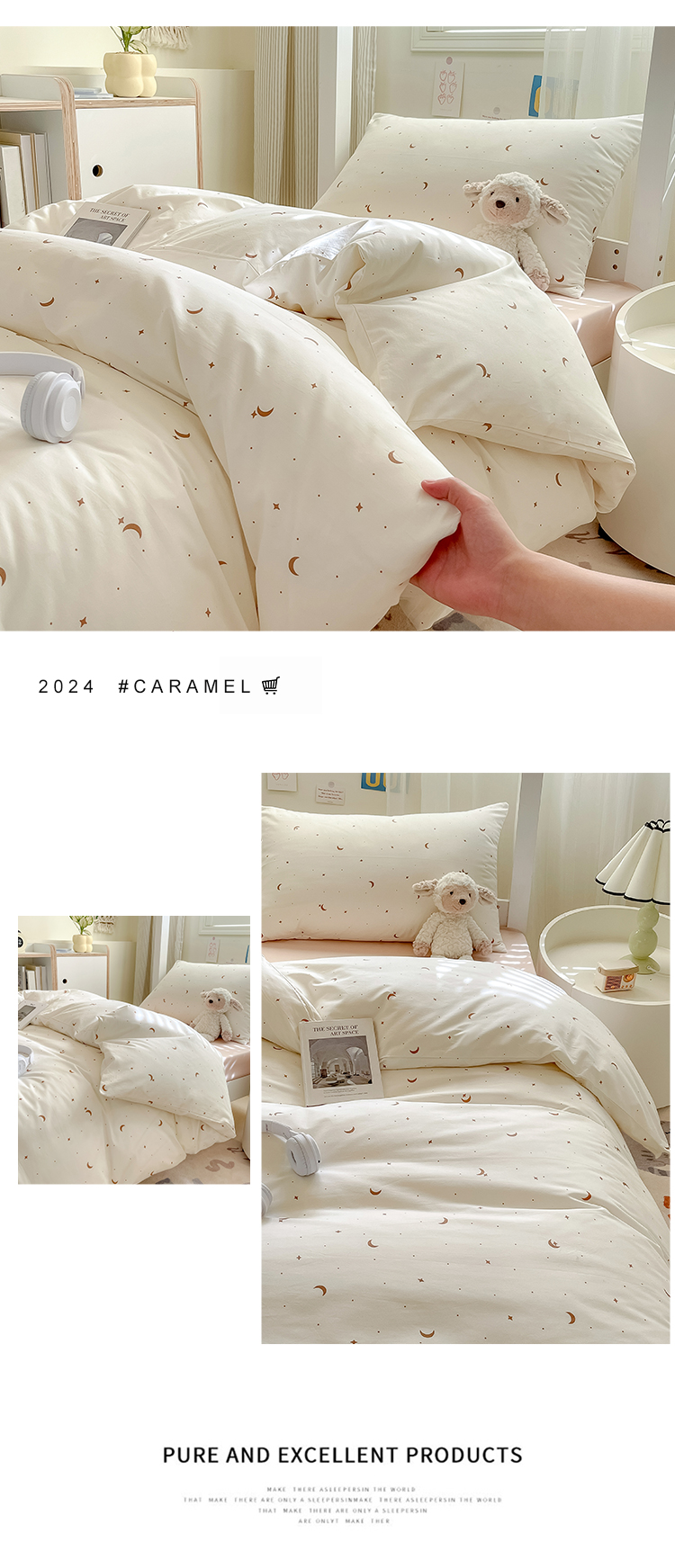 商品名称:Mr.pig猪先生水洗棉 2024新款A类小清新全棉四件套纯棉床单被套床笠学生宿舍三件套床床上用品 月亮星河