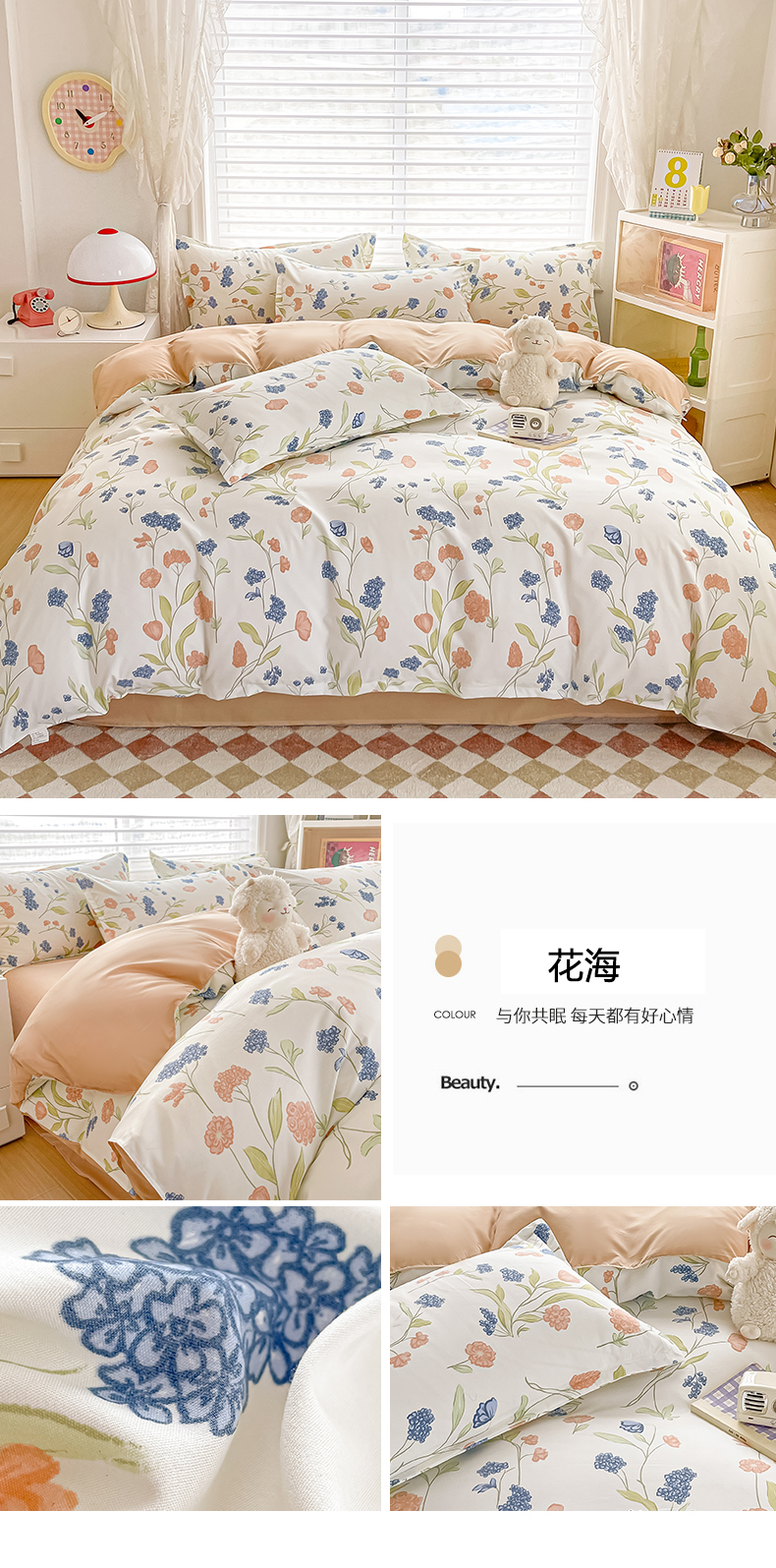 (总)楠沐家纺 2025年新款无印风学生印花四件套芦荟棉水洗棉,彩色波点,觅遇,晴空蓝格,亚麻灰格,烟雾灰格,英伦蓝格