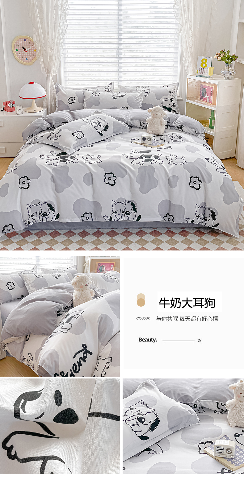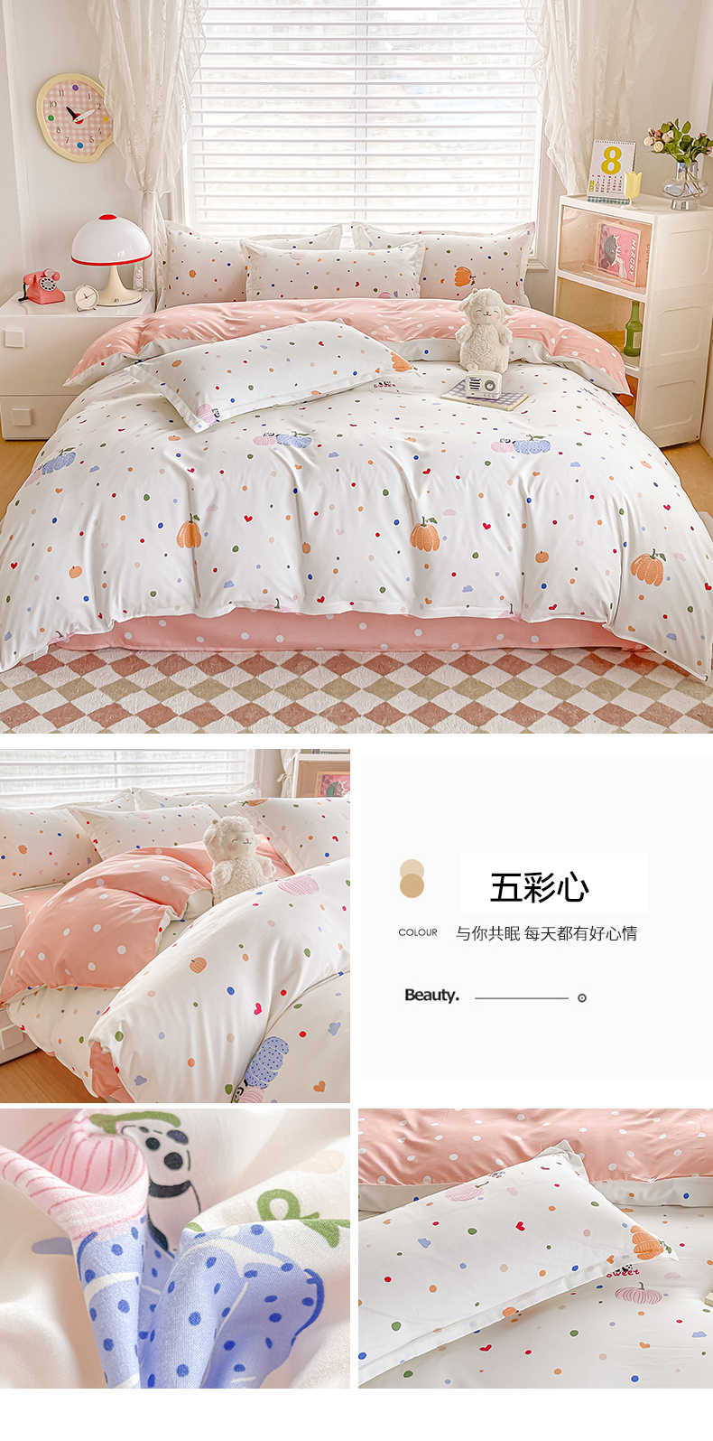 (总)楠沐家纺 2025年新款无印风学生印花四件套芦荟棉水洗棉,彩色波点,觅遇,晴空蓝格,亚麻灰格,烟雾灰格,英伦蓝格