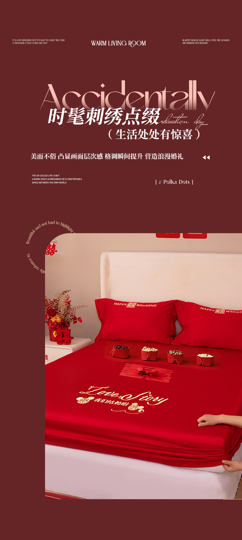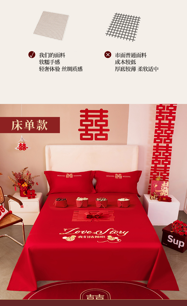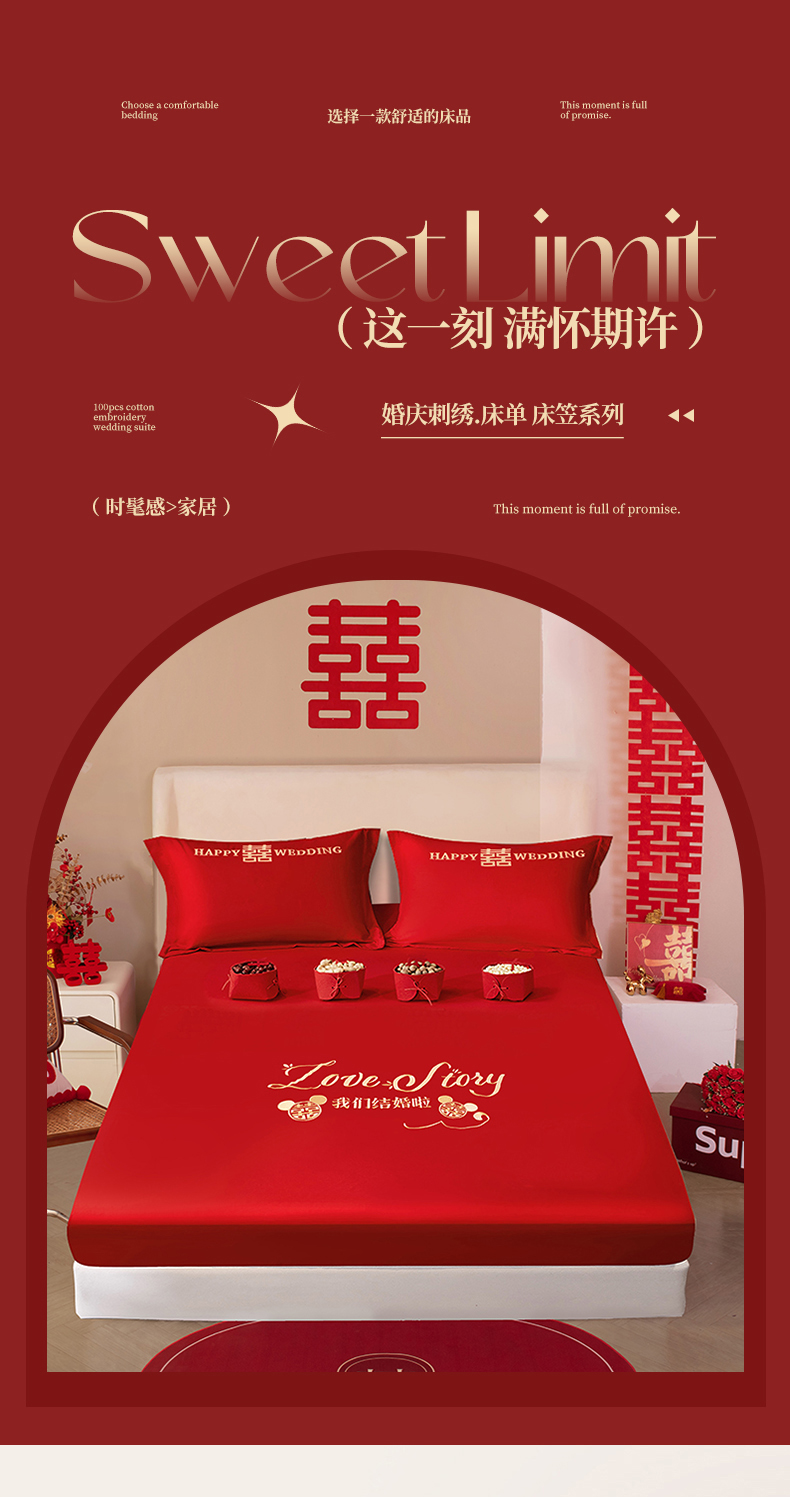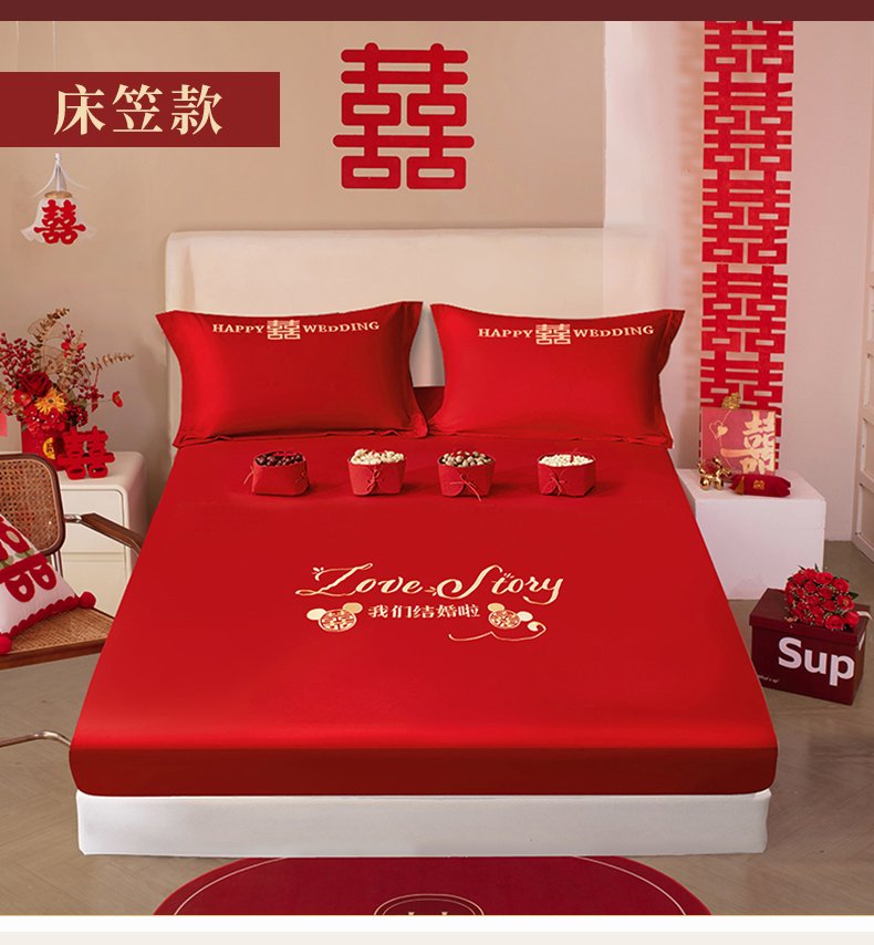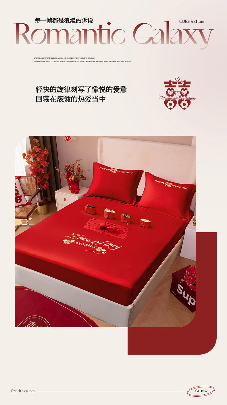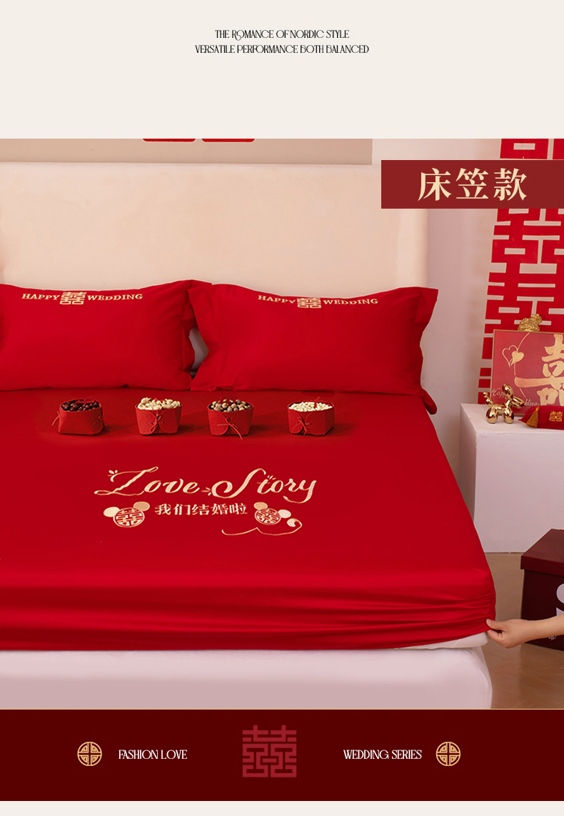 商品名称:卓缦 2024新款婚庆刺绣床笠系列 喜事成双