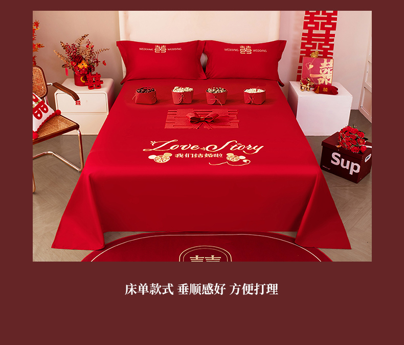 (总)卓缦家纺 2025新款水洗磨毛婚庆床单/床笠,福喜双全,和和美美,龙凤和鸣,千喜图