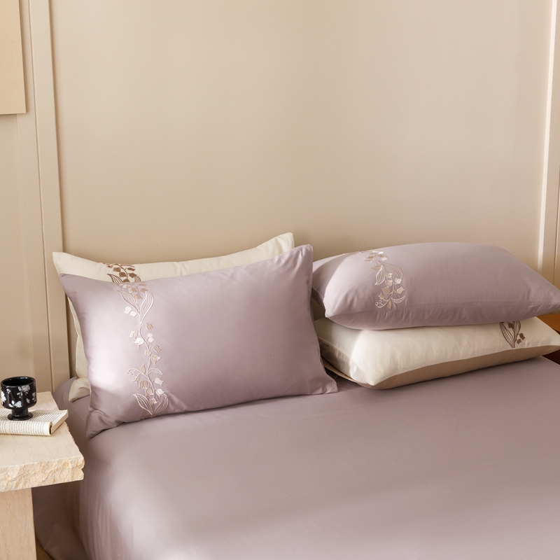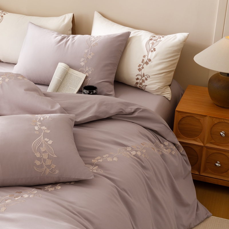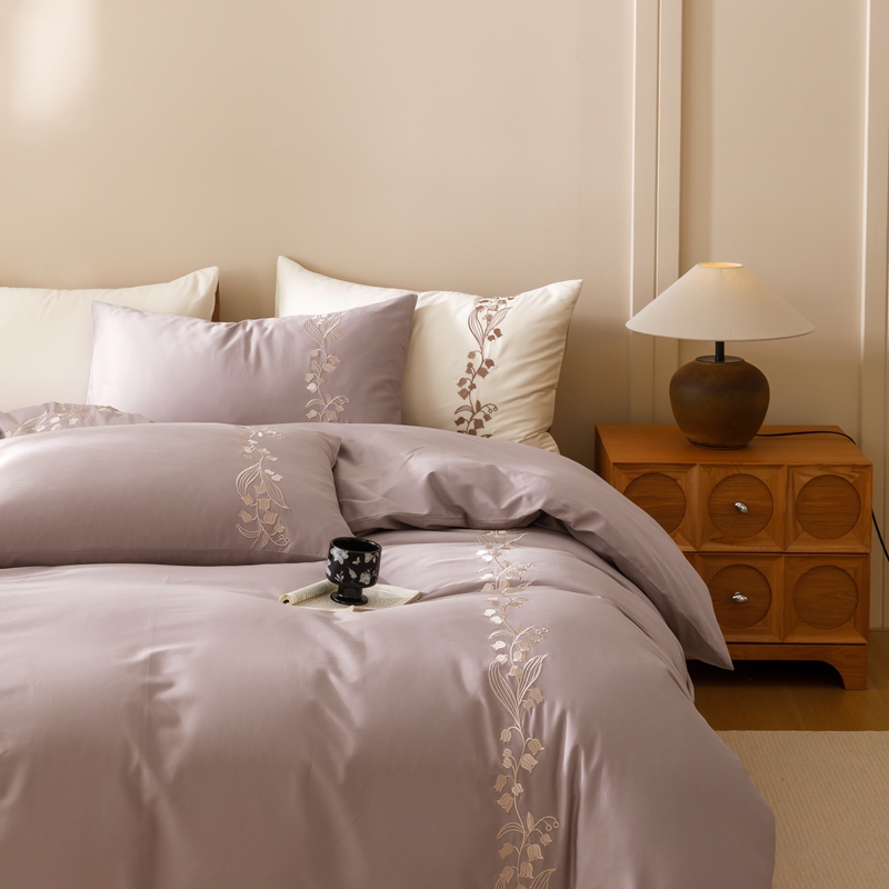 商品名称:初拾 2024新款100s澳棉刺绣-铃兰花语系列四件套 铃兰花语-花蜜紫