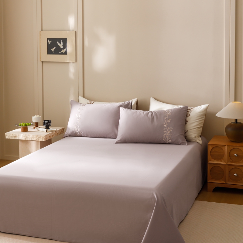 初拾 2024新款100s澳棉刺绣-铃兰花语系列四件套 铃兰花语-花蜜紫