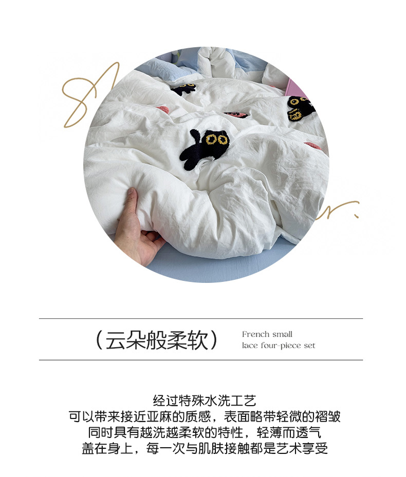 (总)韩巢家纺 2025新款水洗棉大花边被套四件套直播热销款学生宿舍被罩床单三件套(提供卖家秀),春日与玫瑰【大花边款】,繁花似梦【大花边款】,花时宇间【大花边款】,灰蒙小狗【大花边款】,久期诗朵-黄【大花边款】,可可腊肠犬【大花边款】,奶油樱桃【大花边款】,软糖猫【大花边款】,甜樱恋曲【大花边款】,温暖粉心【大花边款】,小花野-紫【大花边款】,小熊冰淇淋【大花边款】,星梦蝶结【大花边款】,幸运可爱兔【大花边款】,摘樱桃的小熊【大花边款】