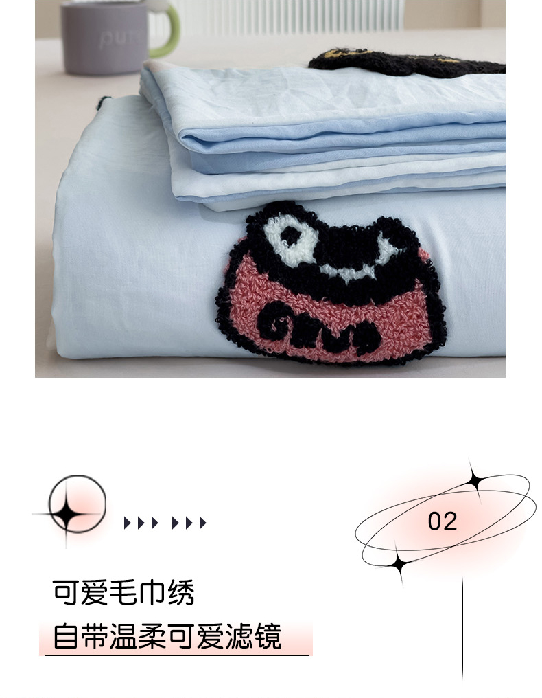 韩巢家纺 2024新款四季通用超柔水洗棉毛巾绣单件被套-幸运猫系列(提供卖家秀 ) 幸运猫白蓝