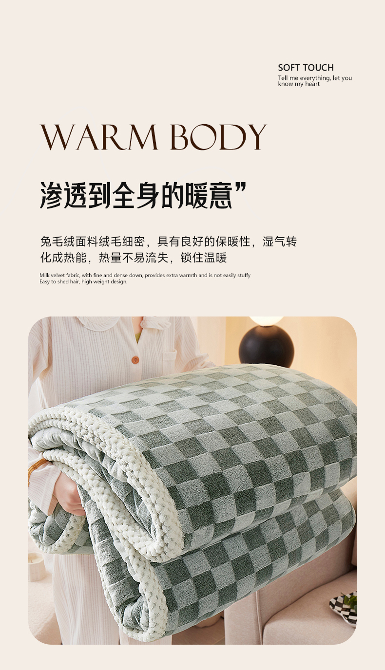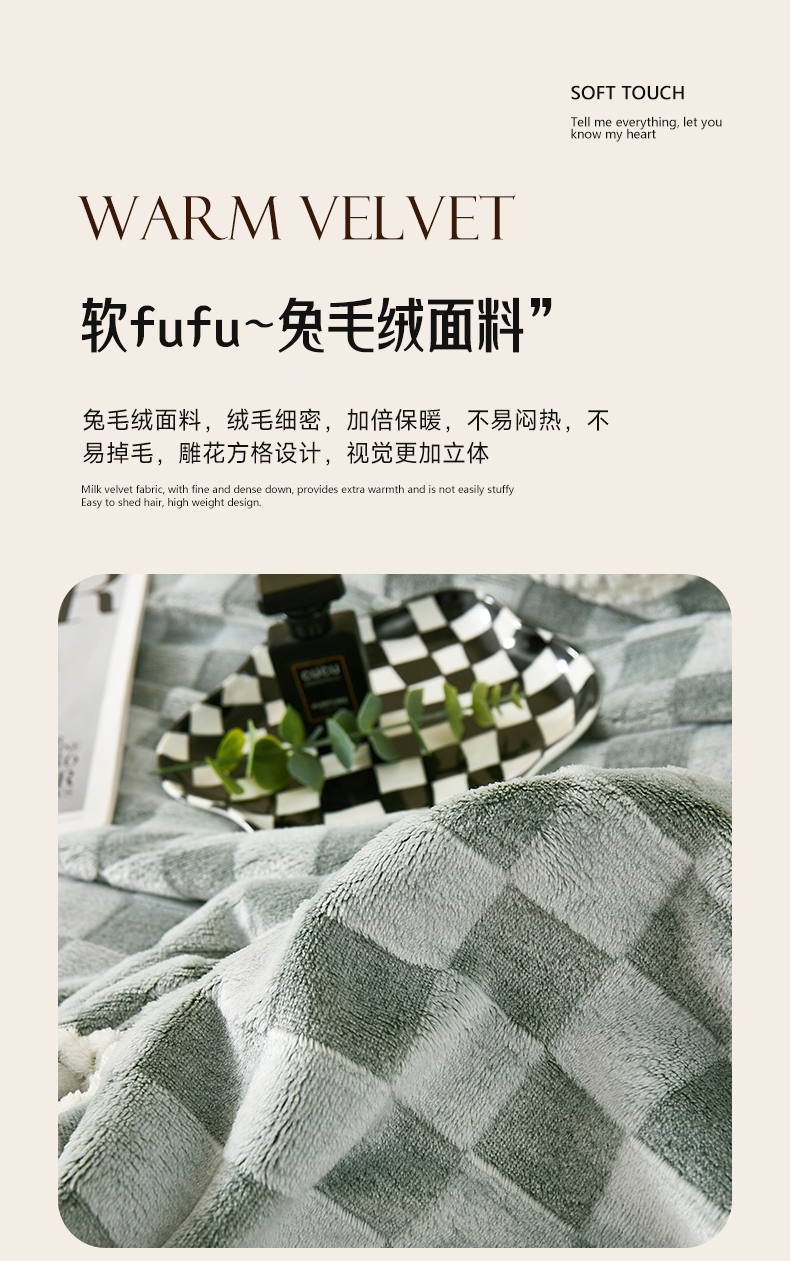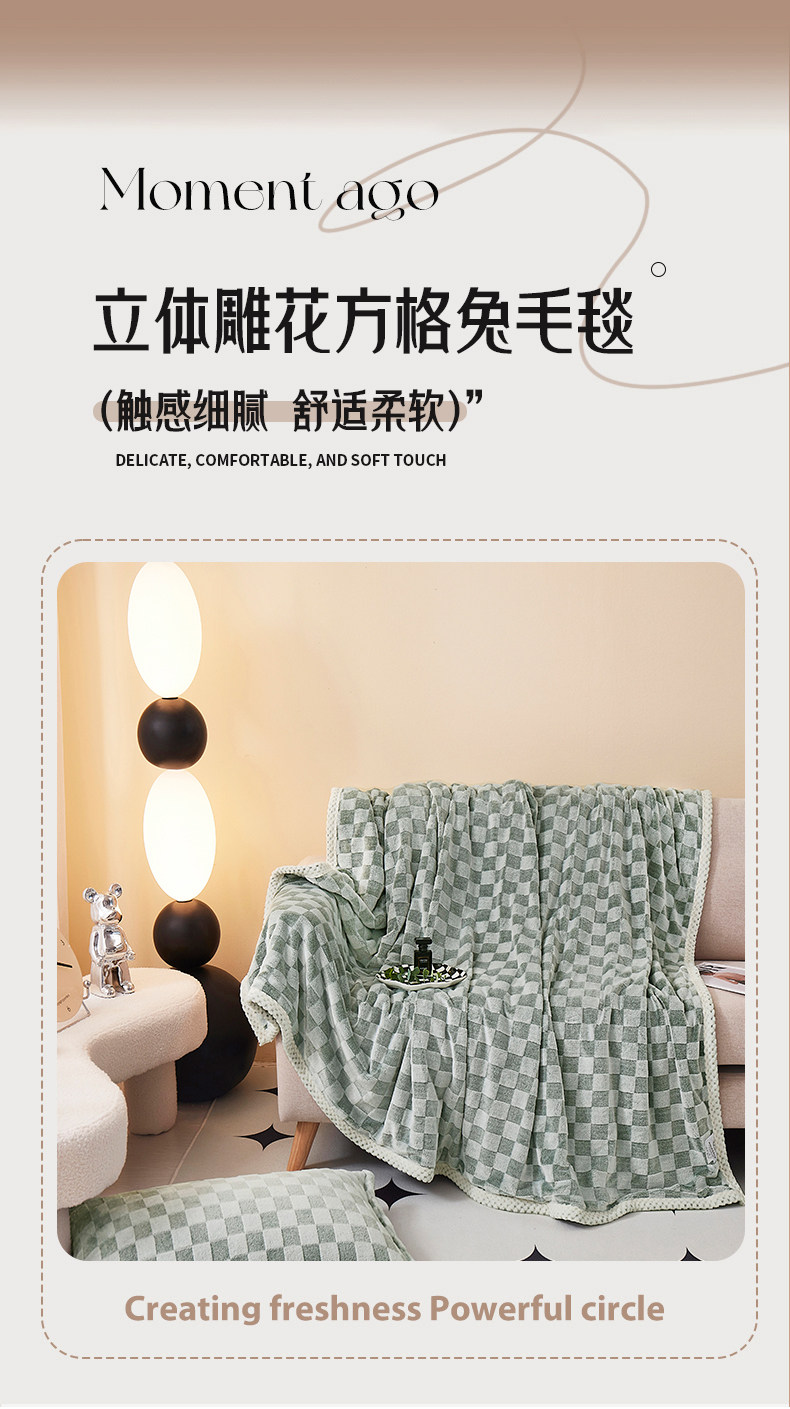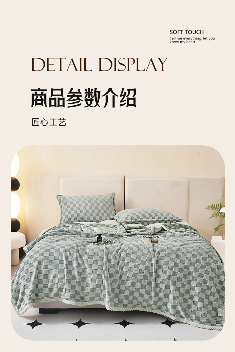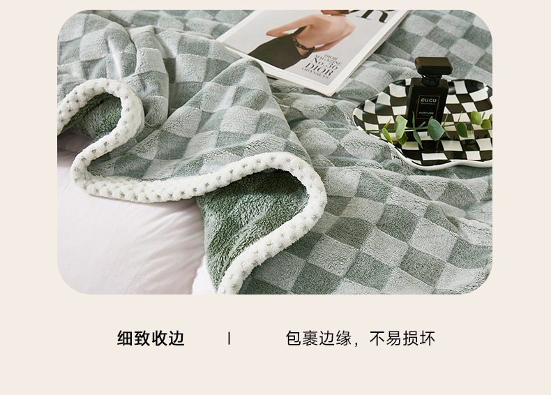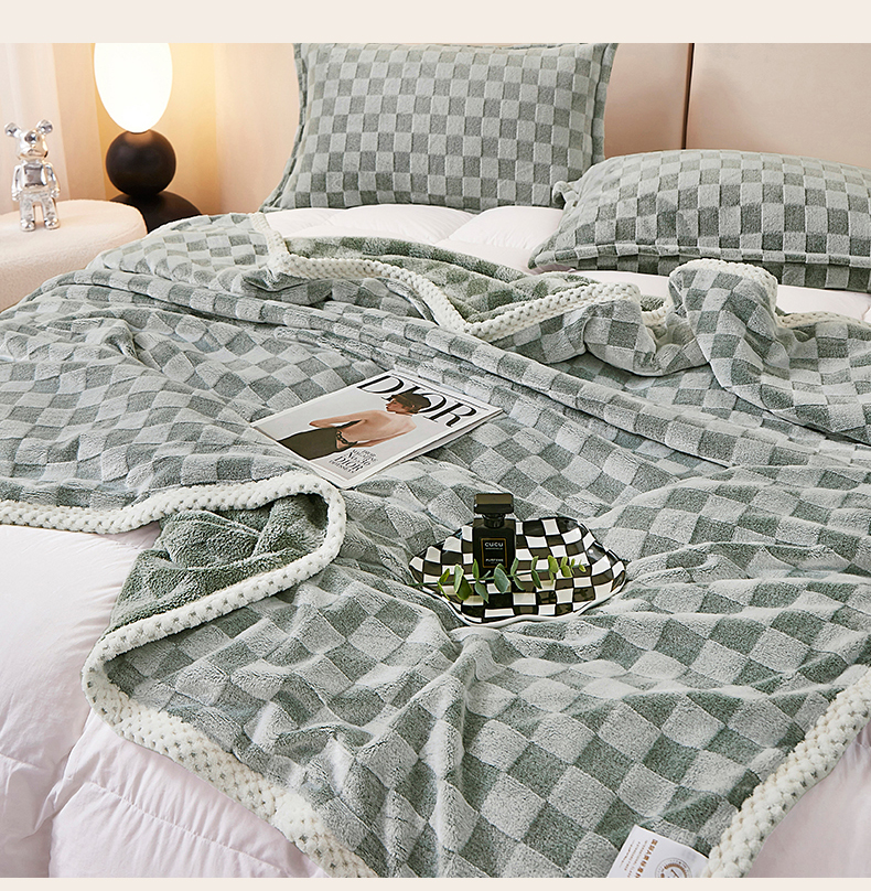 商品名称:肖恩毯业 2025新款兔毛绒方格款毛毯 方格-绿