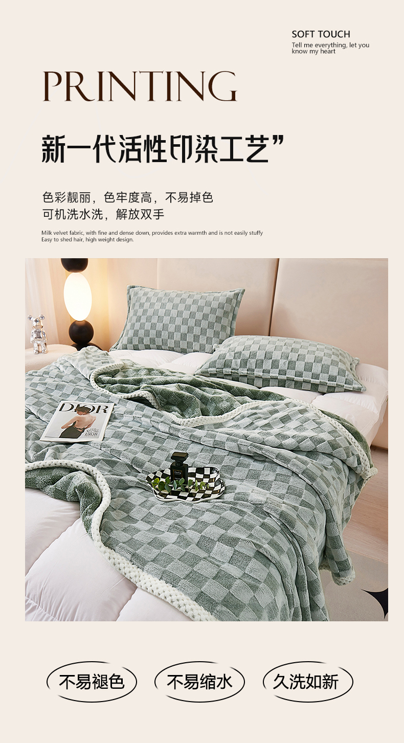 肖恩毯业 2025新款复合牛奶绒云毯子 英伦花绿,英伦花绿
