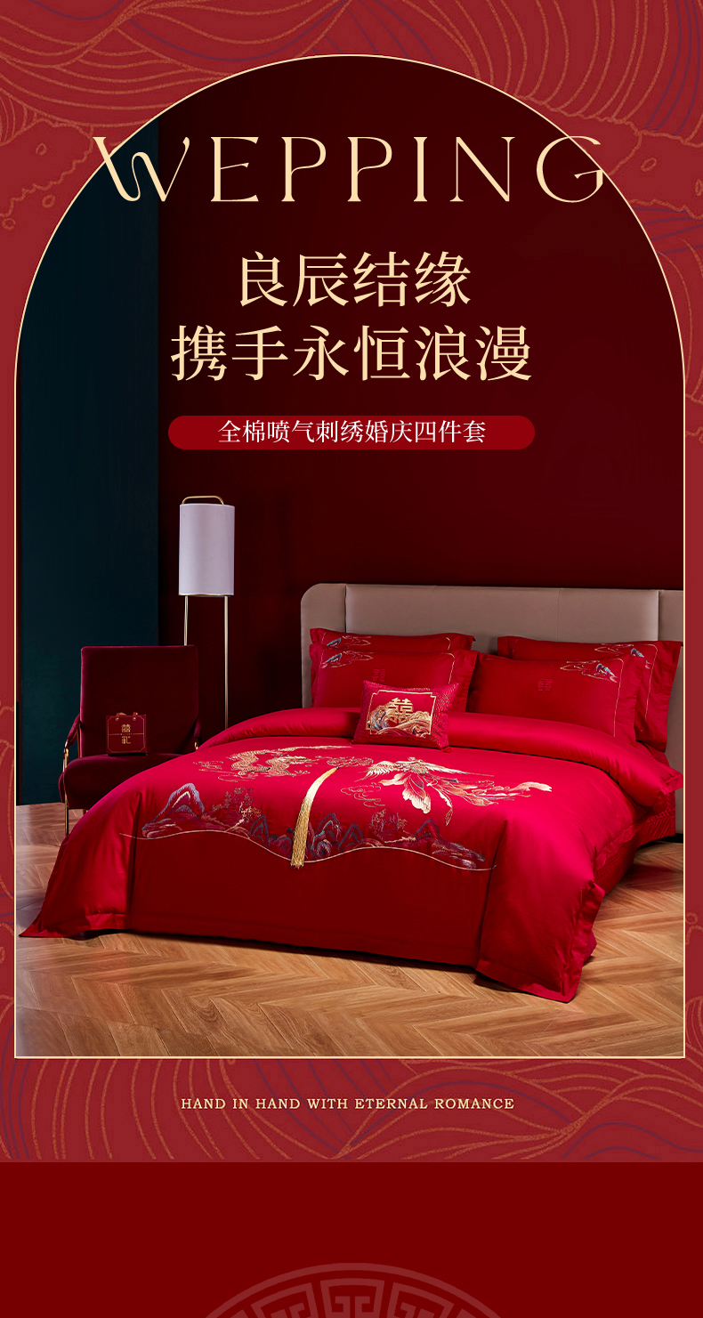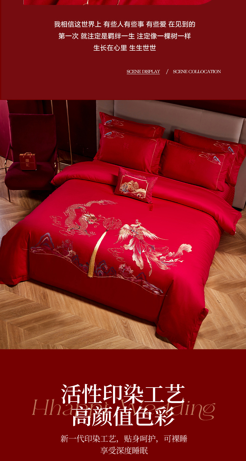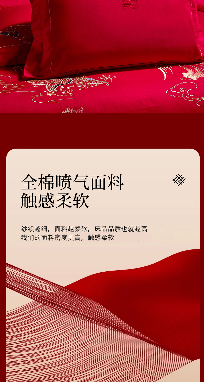 商品名称:张公子婚庆馆 2025新款全棉40s喷气四件套婚庆系列 龙凤传玺-床单款