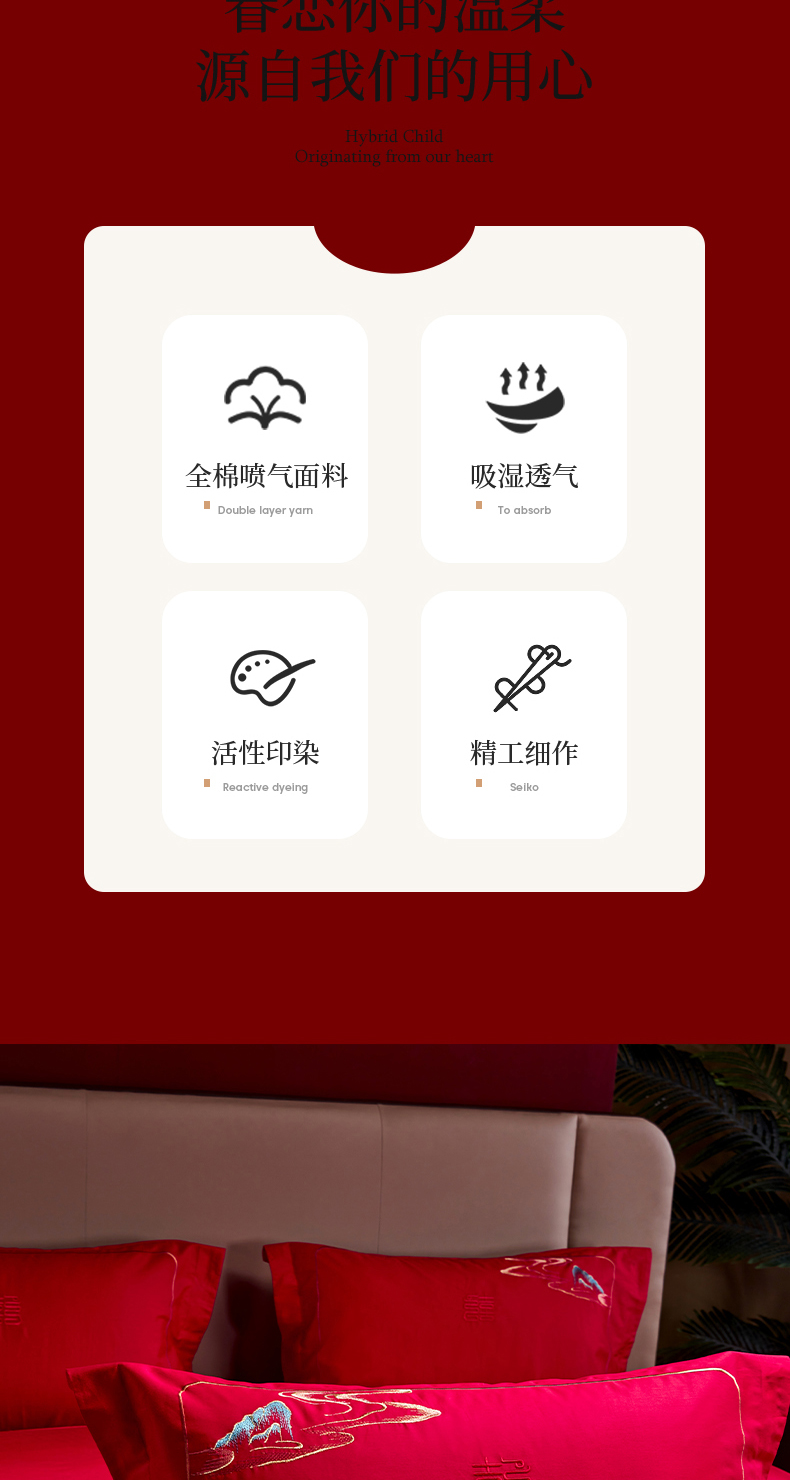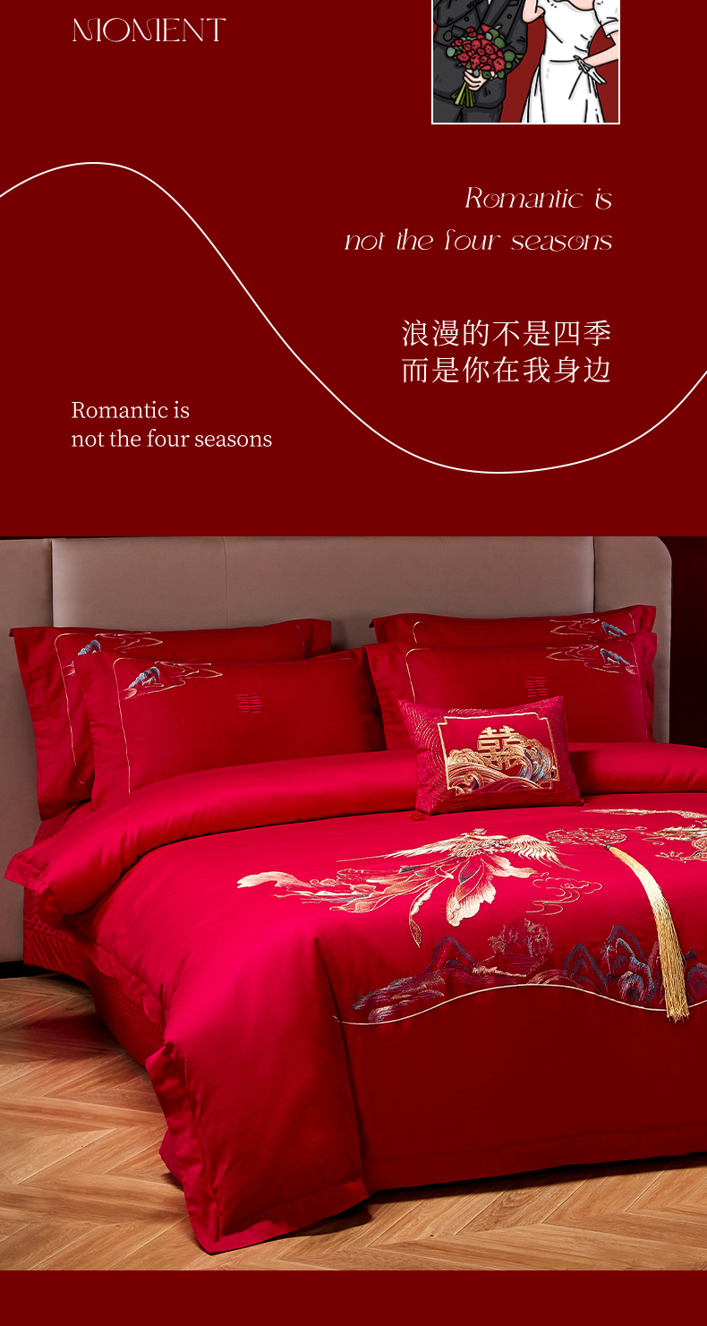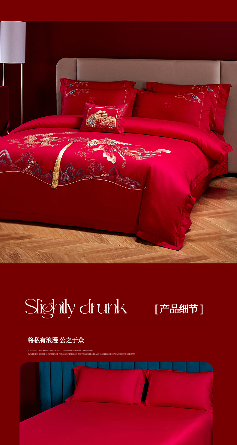 商品名称:张公子婚庆馆 2025新款全棉40s喷气四件套婚庆系列 龙凤传玺-床单款