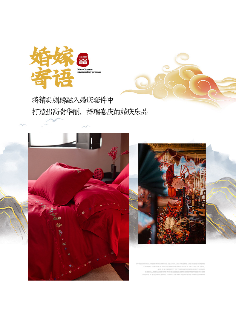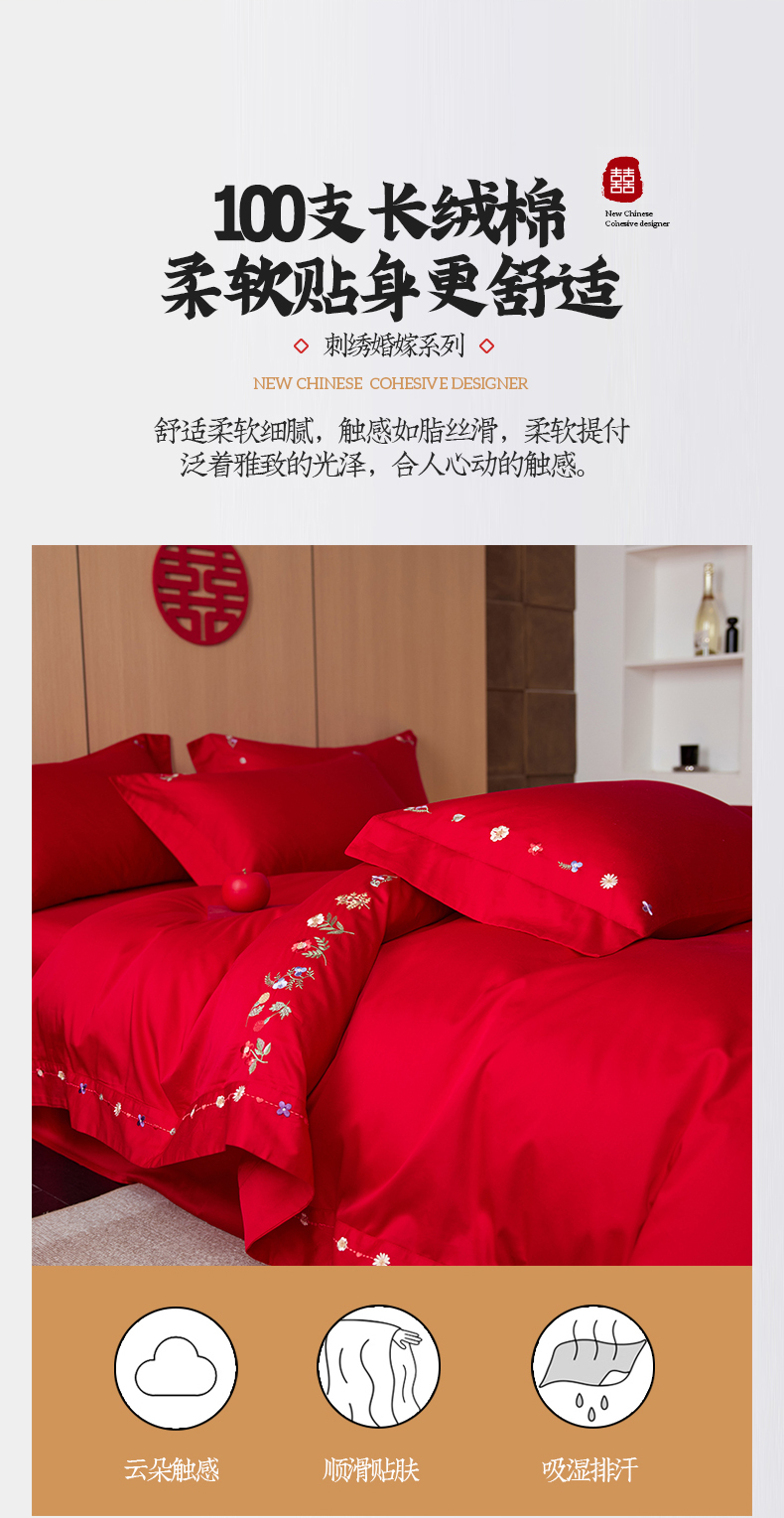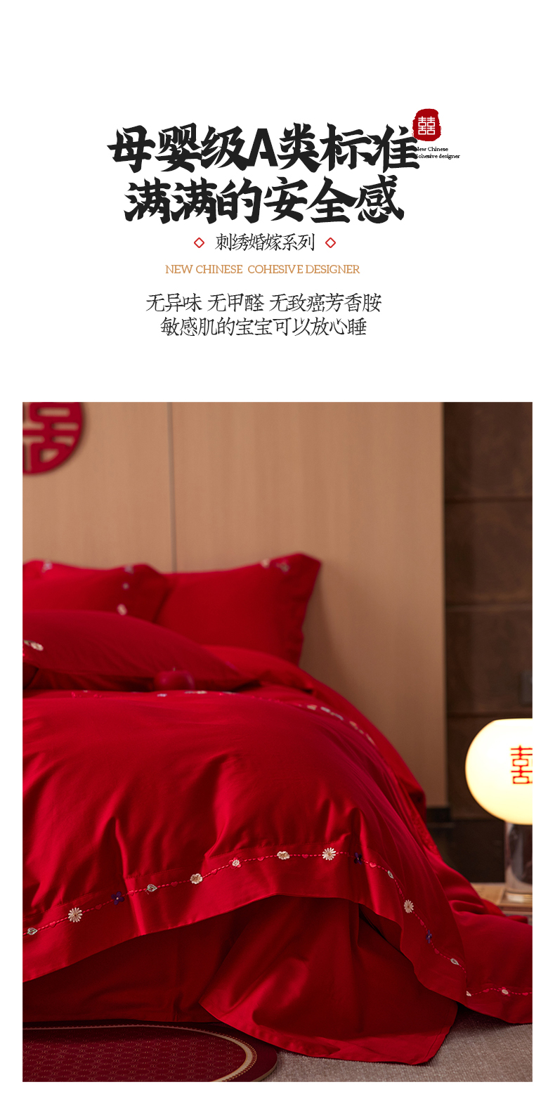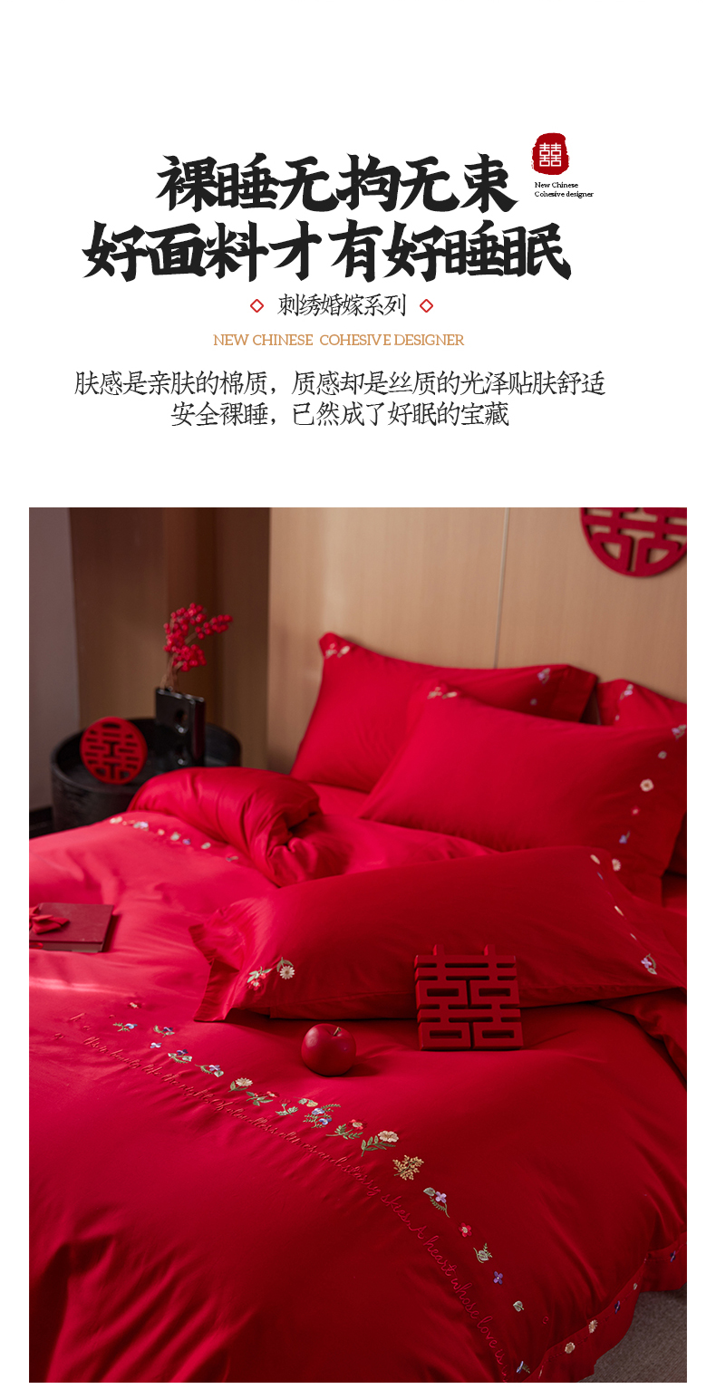 商品名称:简纯主义 2025新款100支长绒棉刺绣四件套花开并蒂系列 花开并蒂红
