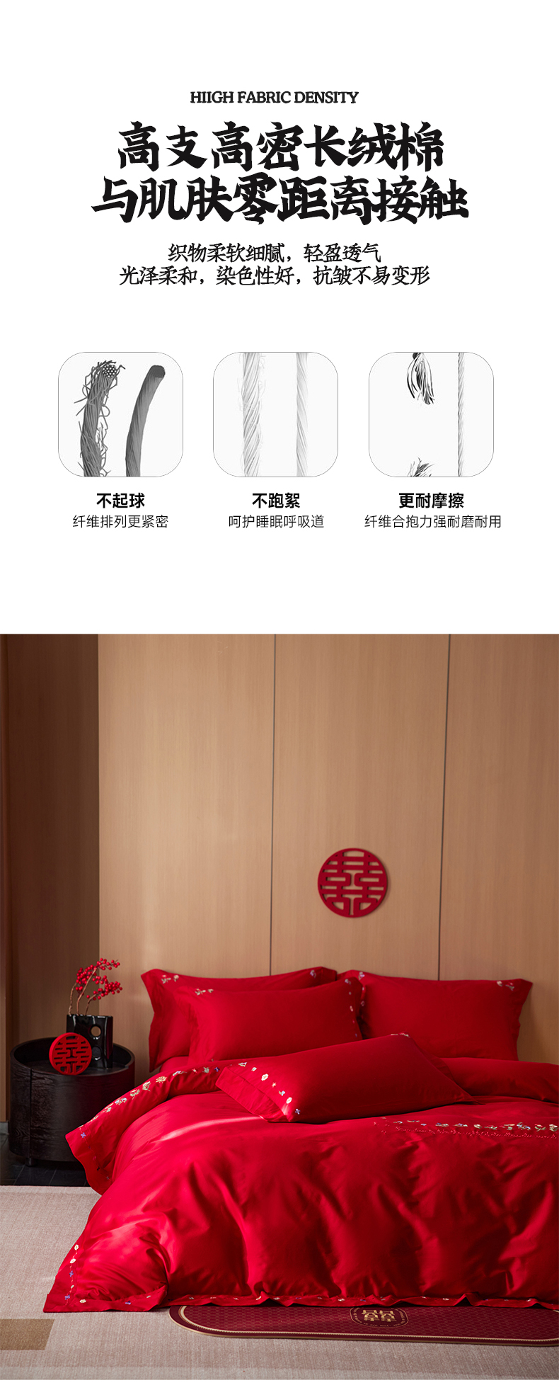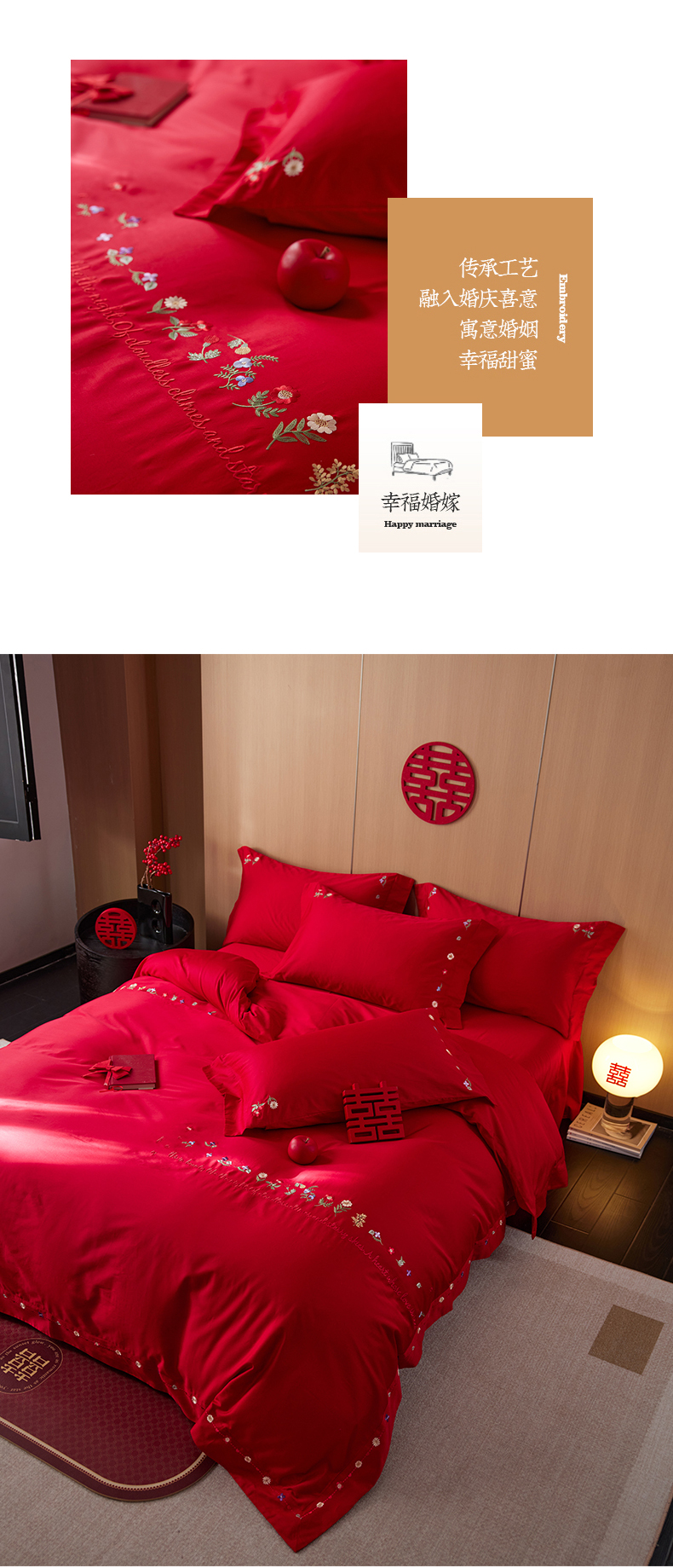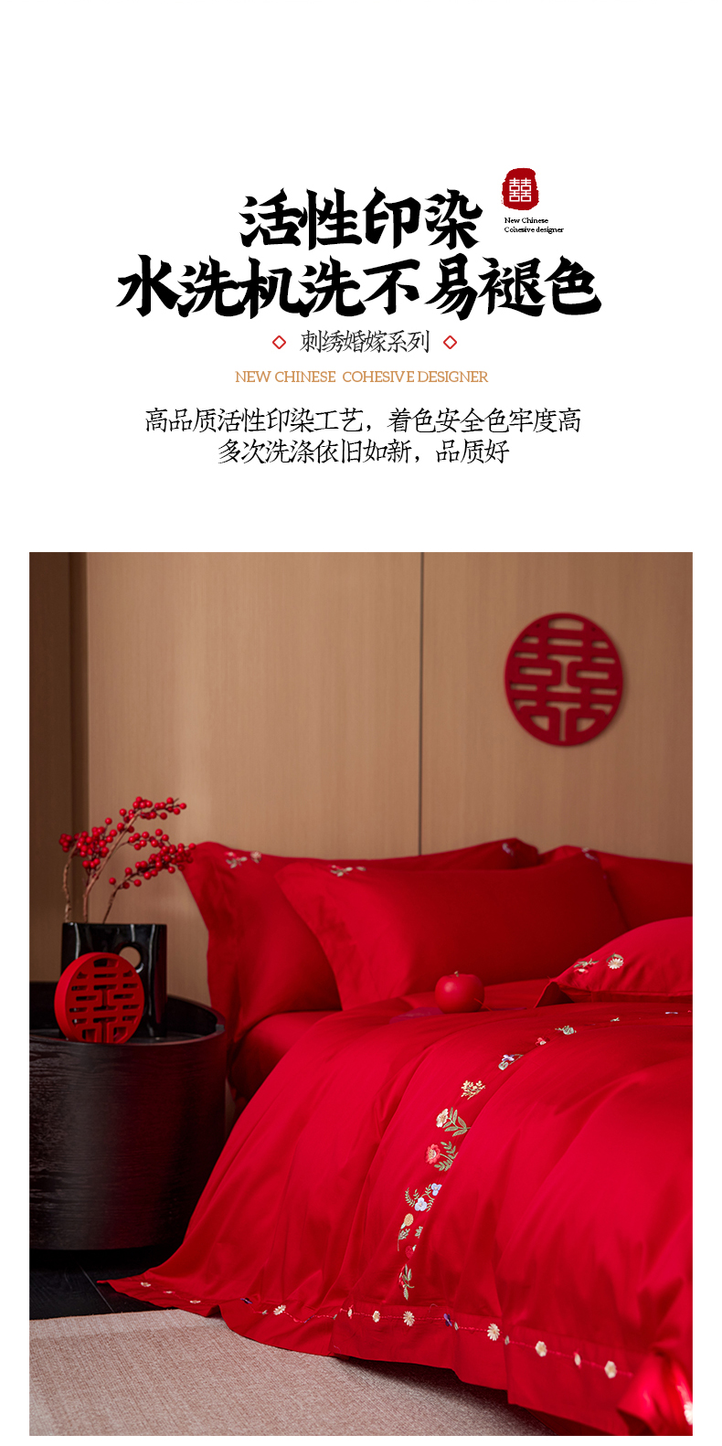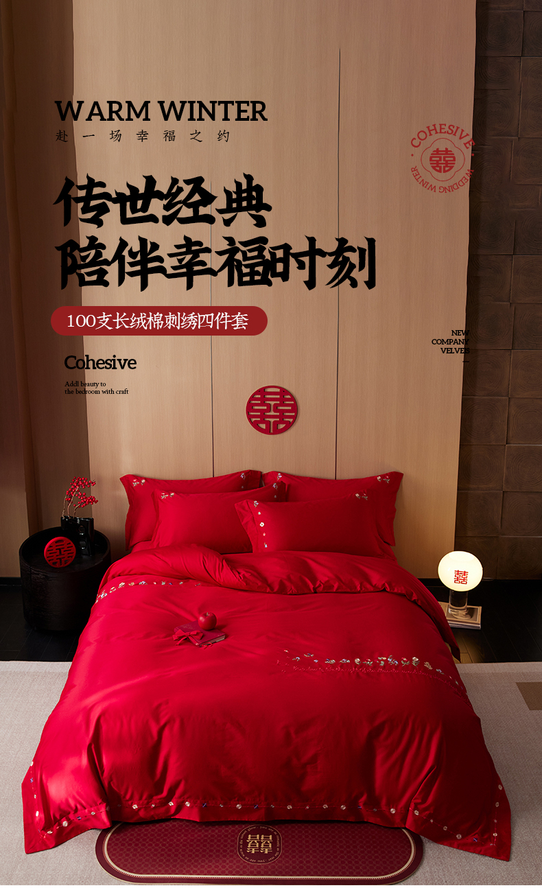 商品名称:简纯主义 2025新款100支长绒棉刺绣四件套花开并蒂系列 花开并蒂红