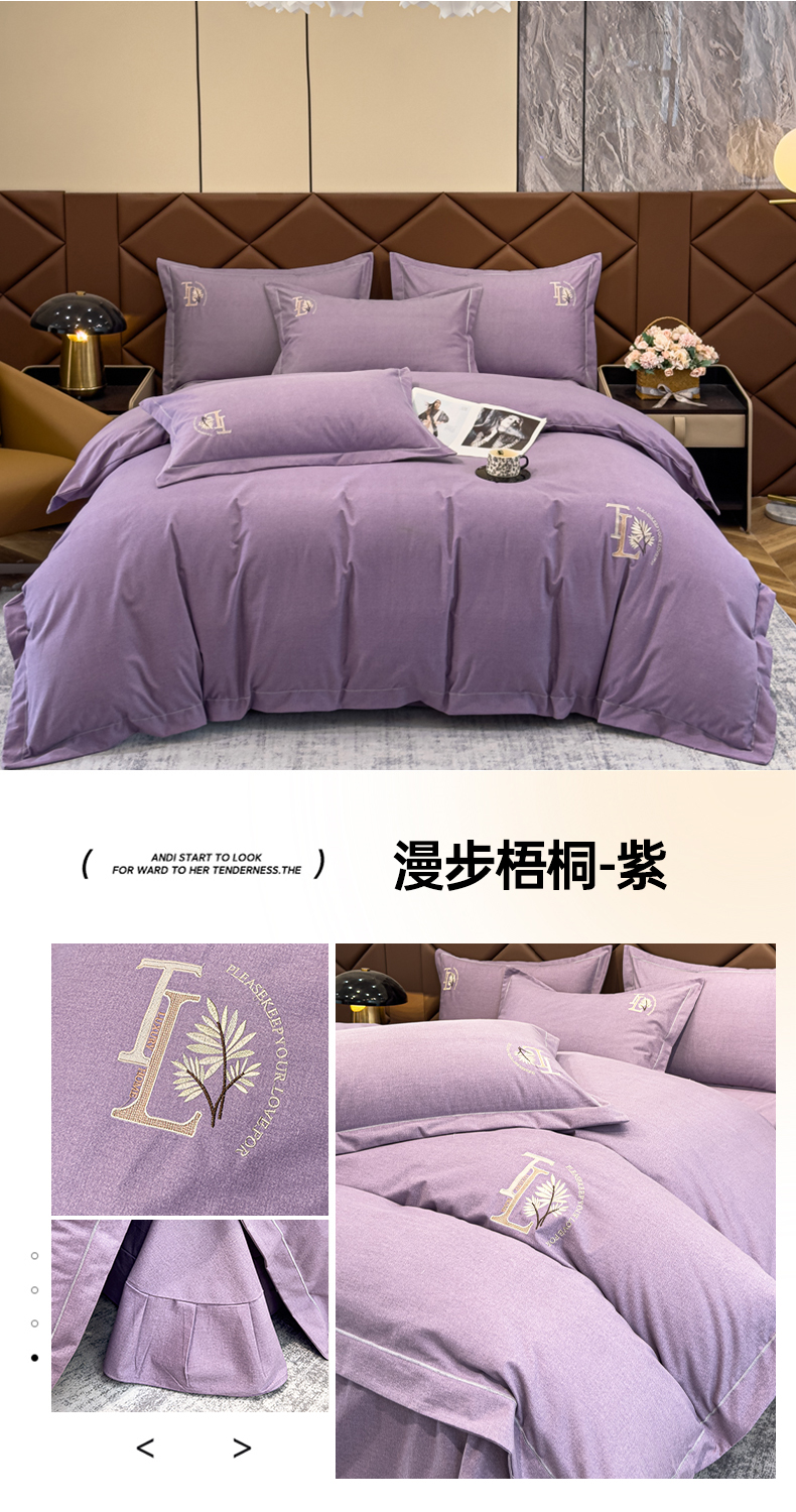 当前位置: 91家纺网 > 商品网购 > 床品套件 > 四件套 > 普通磨毛四件套 > U品汇 2024新品生态加厚长绒棉纯棉绣花全棉磨毛刺绣四件套宽边款直播 漫步梧桐-紫