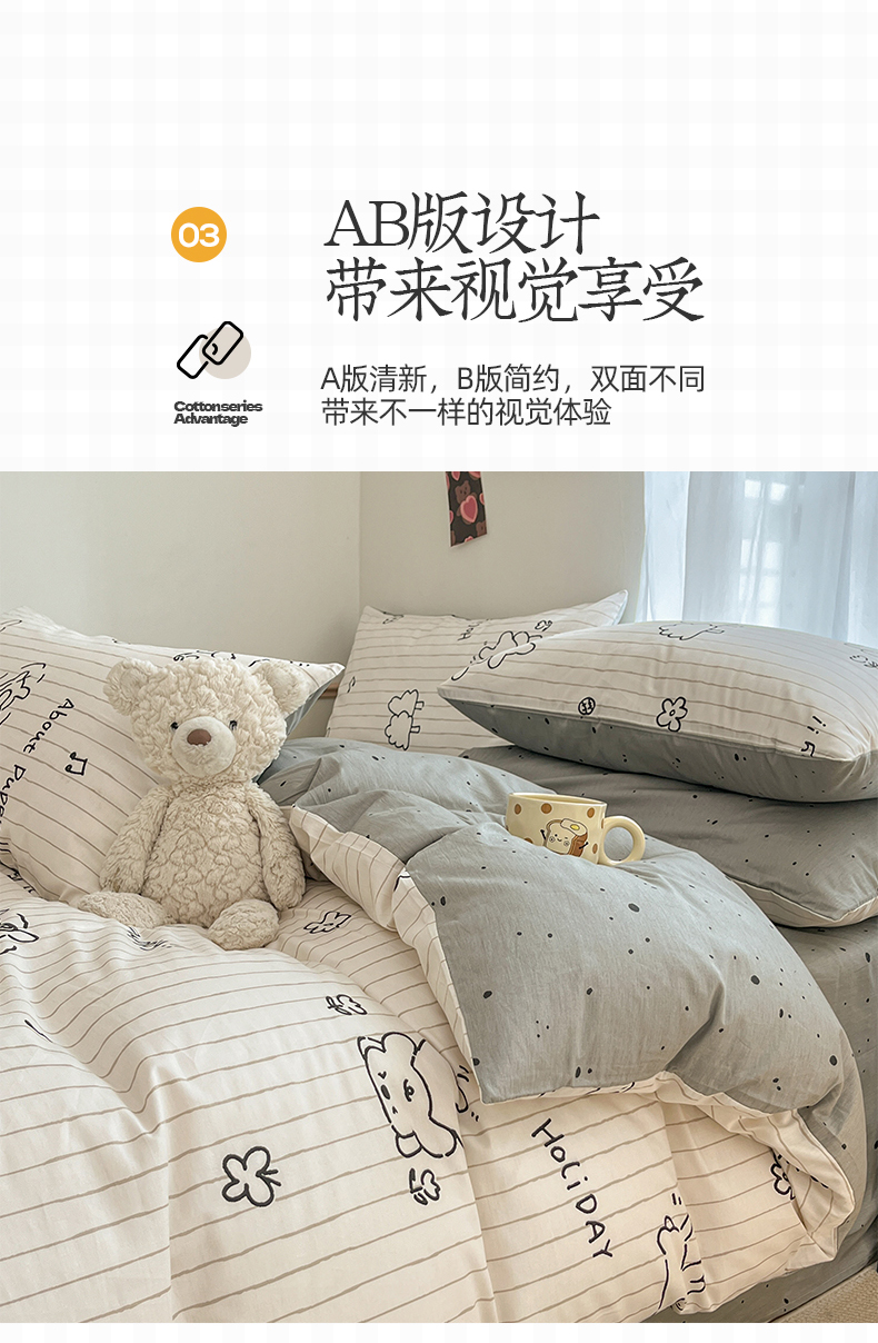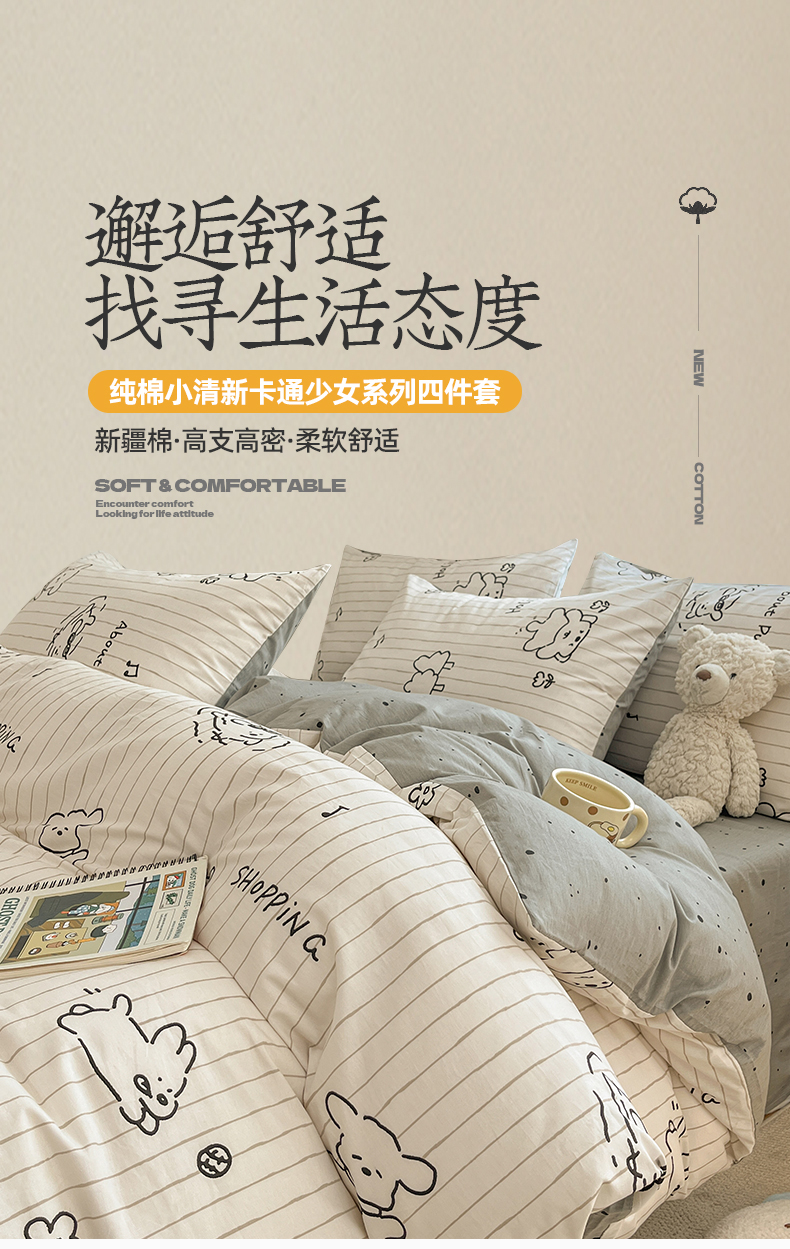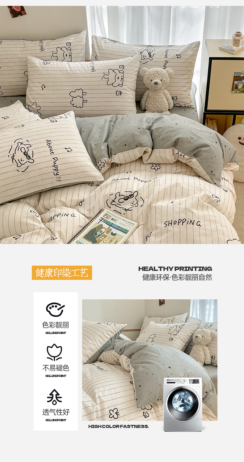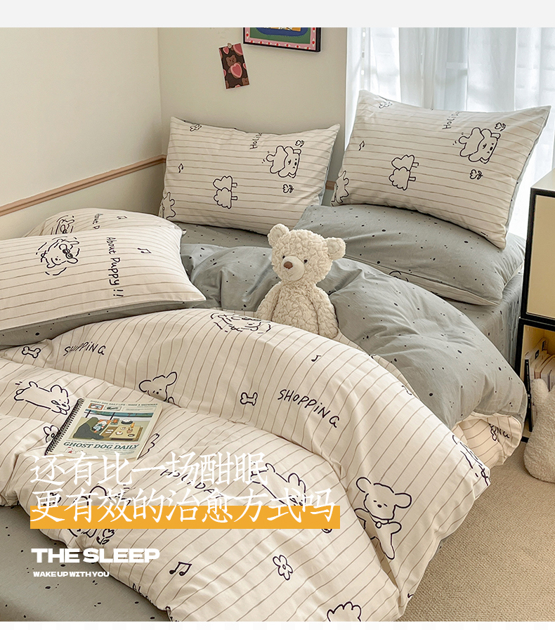 桃子家居 2024新款纯棉小清新卡通少女13372系列四件套 棉-新嗨皮狗