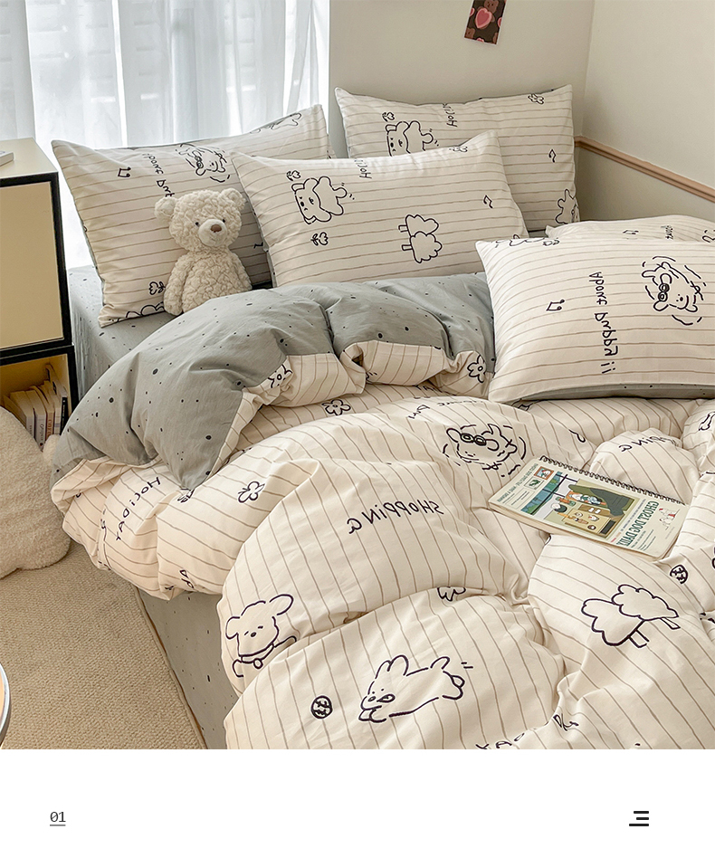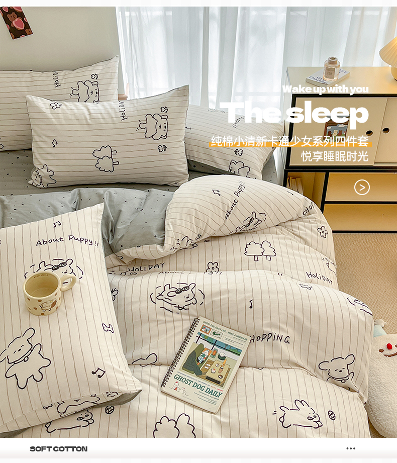 商品名称:桃子家居 2024新款纯棉小清新卡通少女13372系列四件套 棉-新嗨皮狗