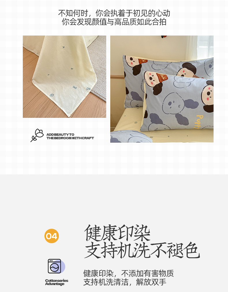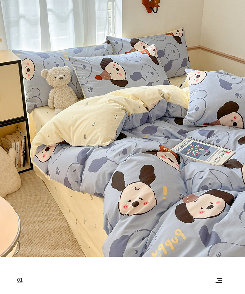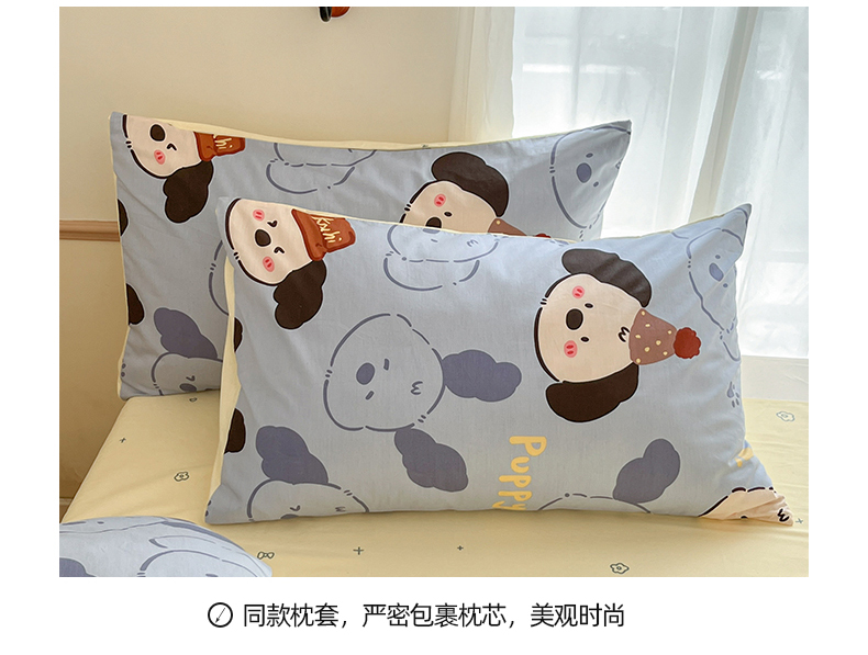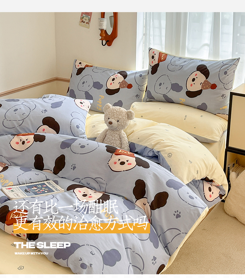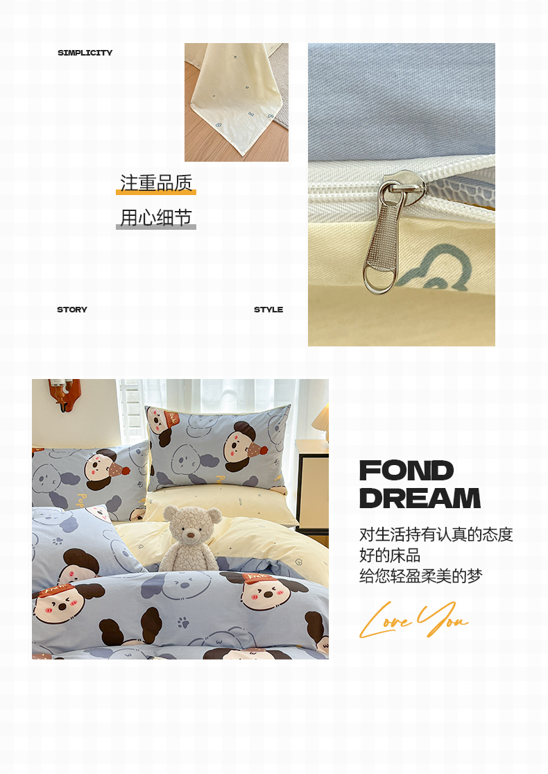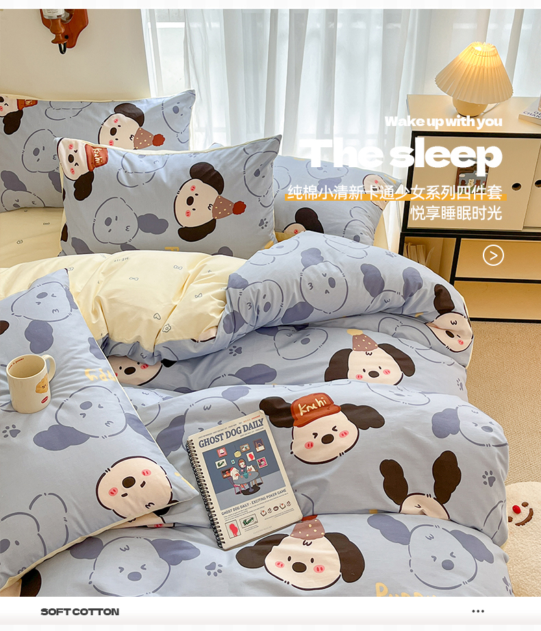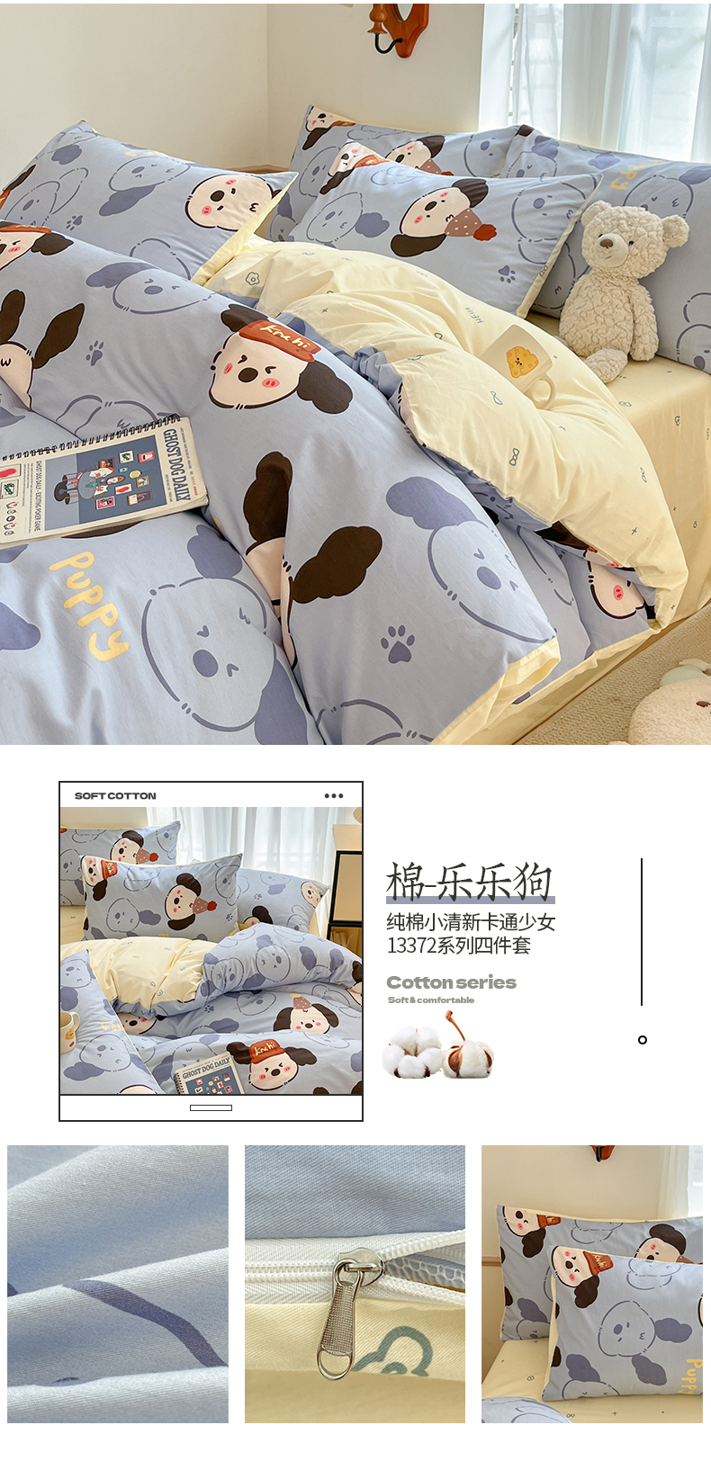 商品名称:桃子家居 2024新款纯棉小清新卡通少女13372系列四件套 棉-乐乐狗