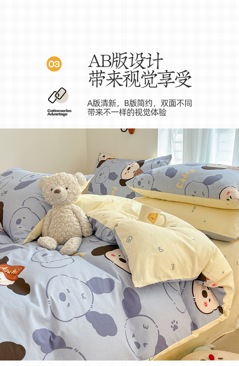 桃子家居 2024新款纯棉小清新卡通少女13372系列四件套 棉-乐乐狗