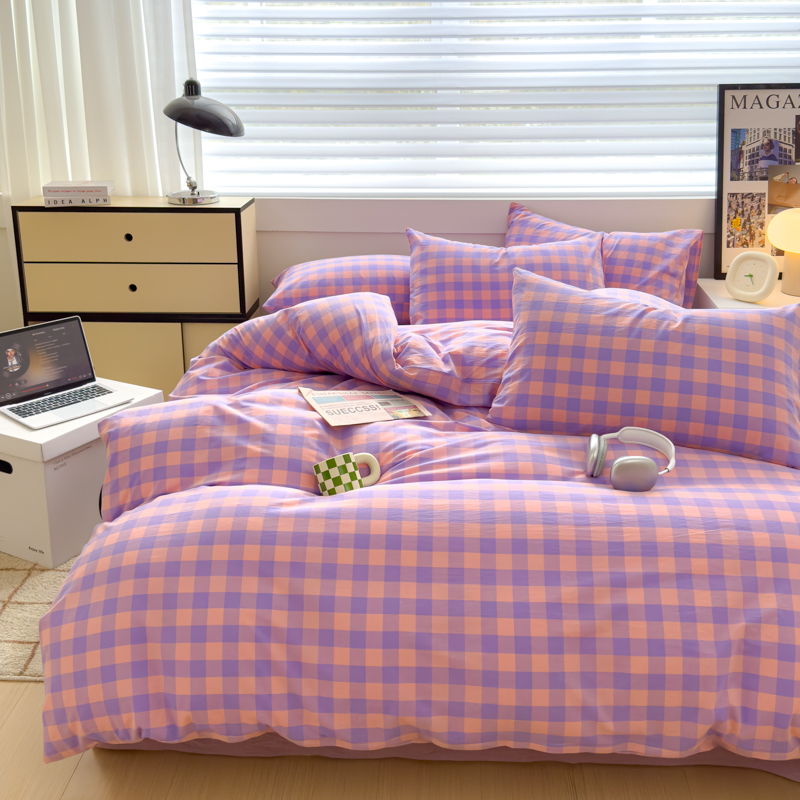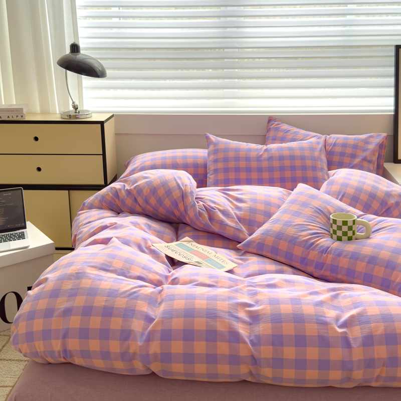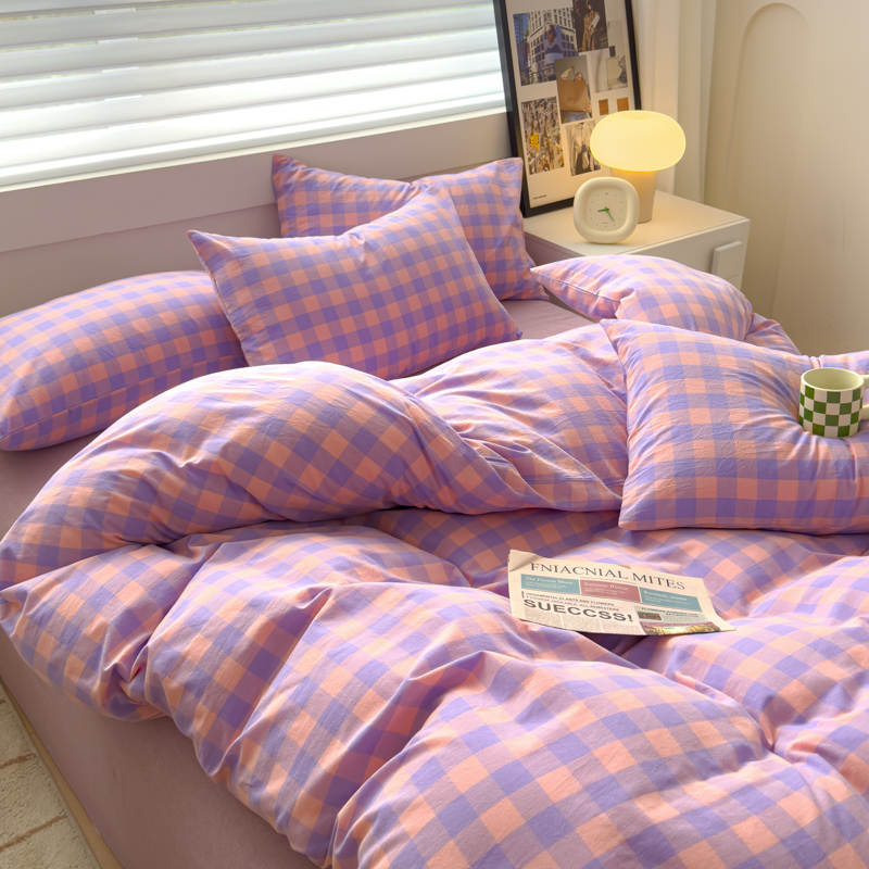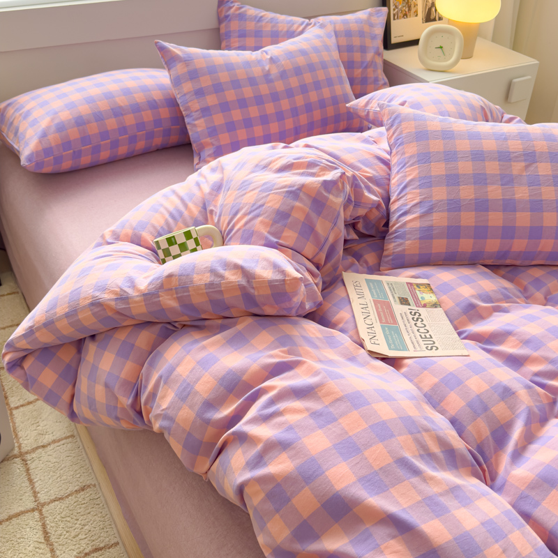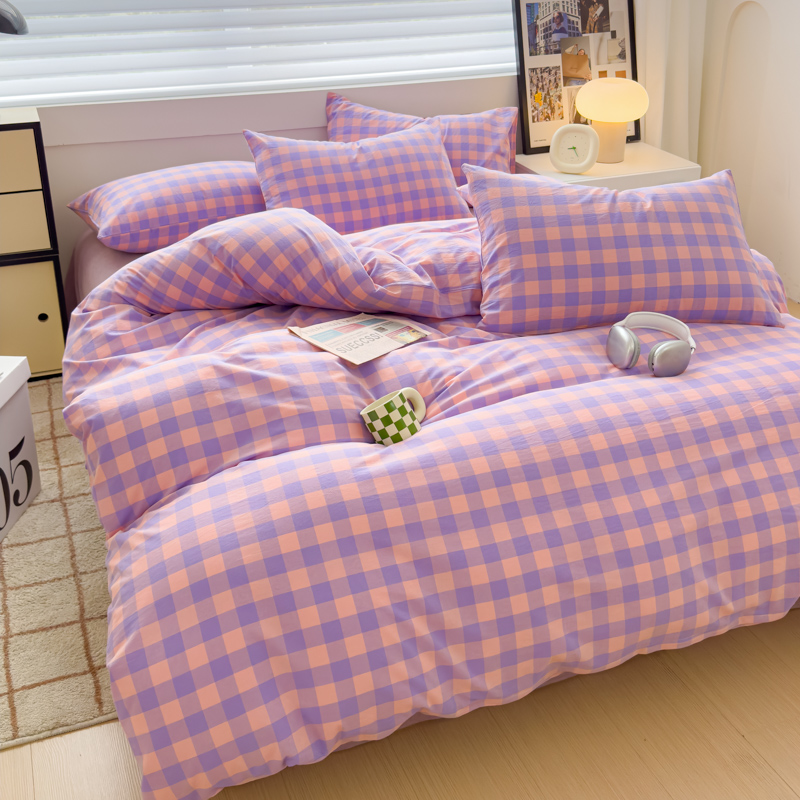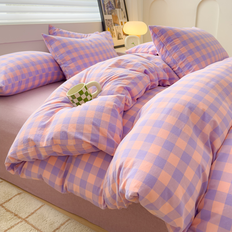 星尚家纺 2024新款A类全棉色织水洗棉三四件套系列-单被套 粉紫格