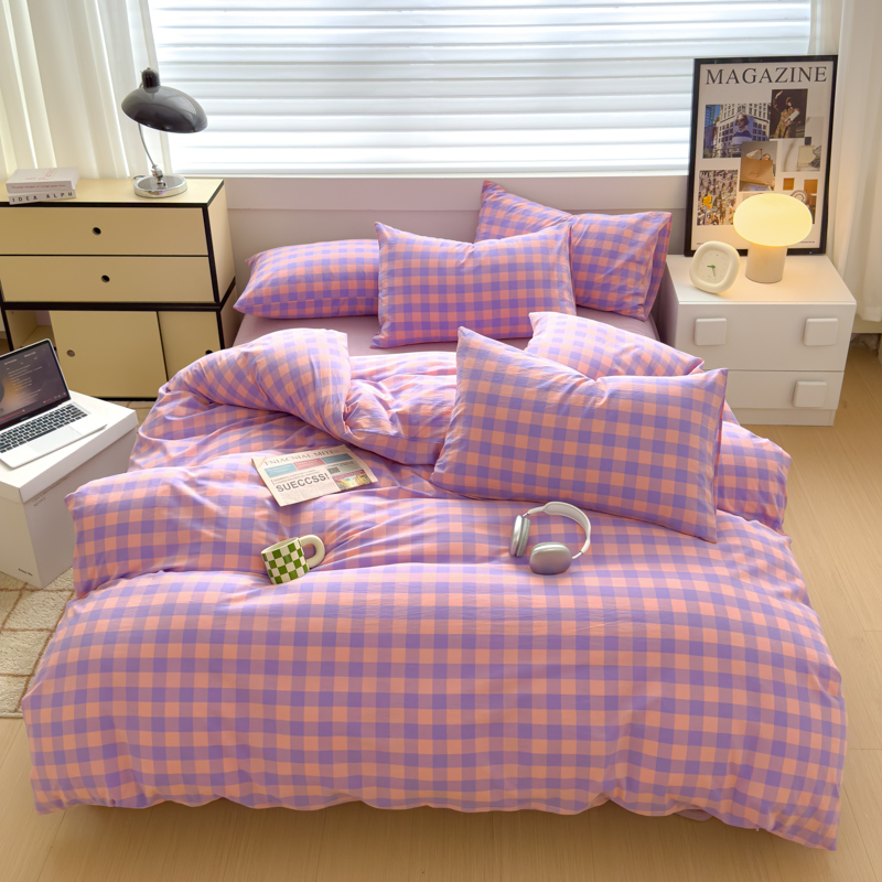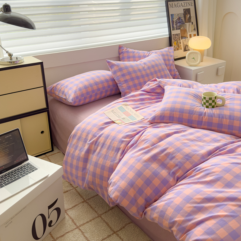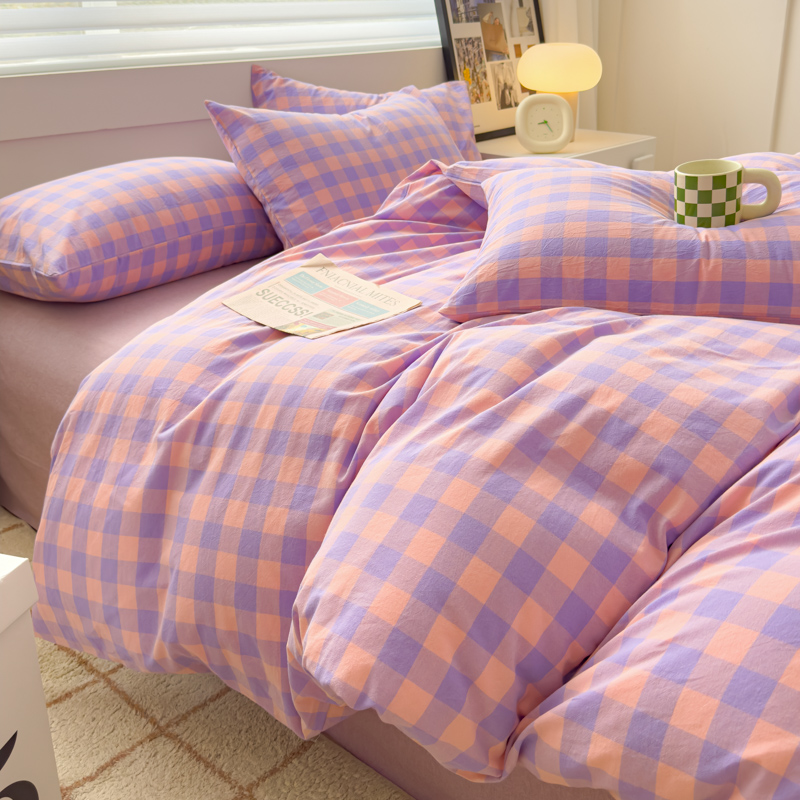 商品名称:星尚家纺 2024新款A类全棉色织水洗棉三四件套系列-单被套 粉紫格