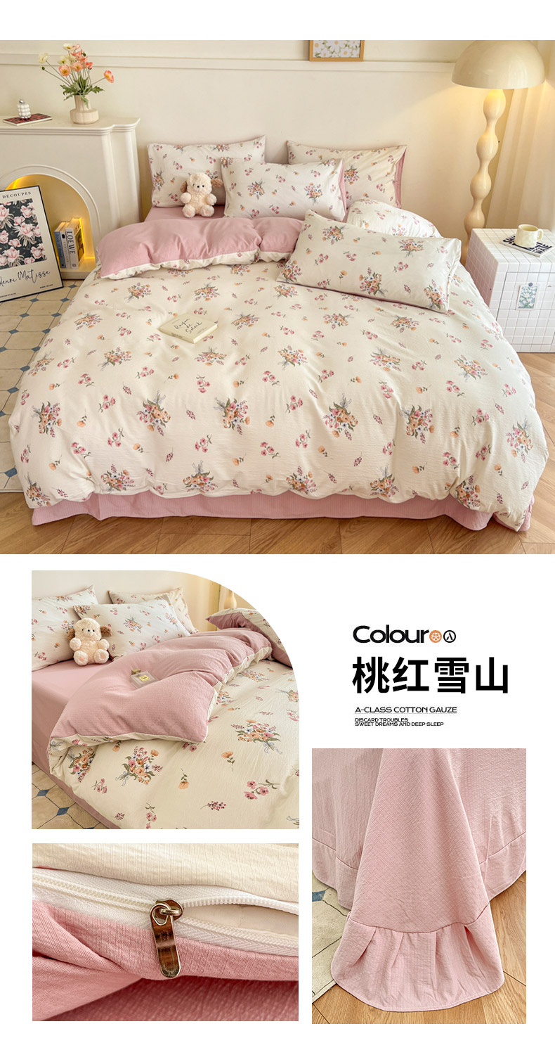 (总)金梦拉家纺 2025新款提花纱布棉双层纱皱皱纱四件套,微醺玫瑰,梦华录,花开半夏,漫山紫野,薄荷初夏,点点草莓,法式浪漫,粉杏绿,花颜,惠心,桔梗紫,咖调蝴蝶结,快乐狗,梨落,林间兔,绿意,绿茵,满园春色,曼塔庄园,萌萌小兔,雾野山茶,小野菊,寻春,樱桃,月梨漫香,芝士黄,枝蔓绿,紫线调,紫樱落